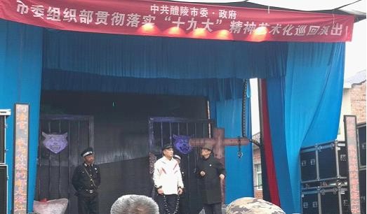 3月1日,由醴陵市委、政府主办、醴陵市花鼓戏团承办的“市委组织部贯彻落实党的十九大精神艺术化巡回演出”来到沈潭镇。本次演出紧扣党的十九大精神,本着“通俗易懂”的原则,确保老百姓“坐得住、乐意听、记得牢”,演出以舞蹈、民歌和花鼓戏曲的形式逐一呈现,现场吸引了近200名民众前来观看,不时响起热烈的掌声和喝彩声,“接地气”的表演让党的十九大精神真正走进人民群众心坎里。