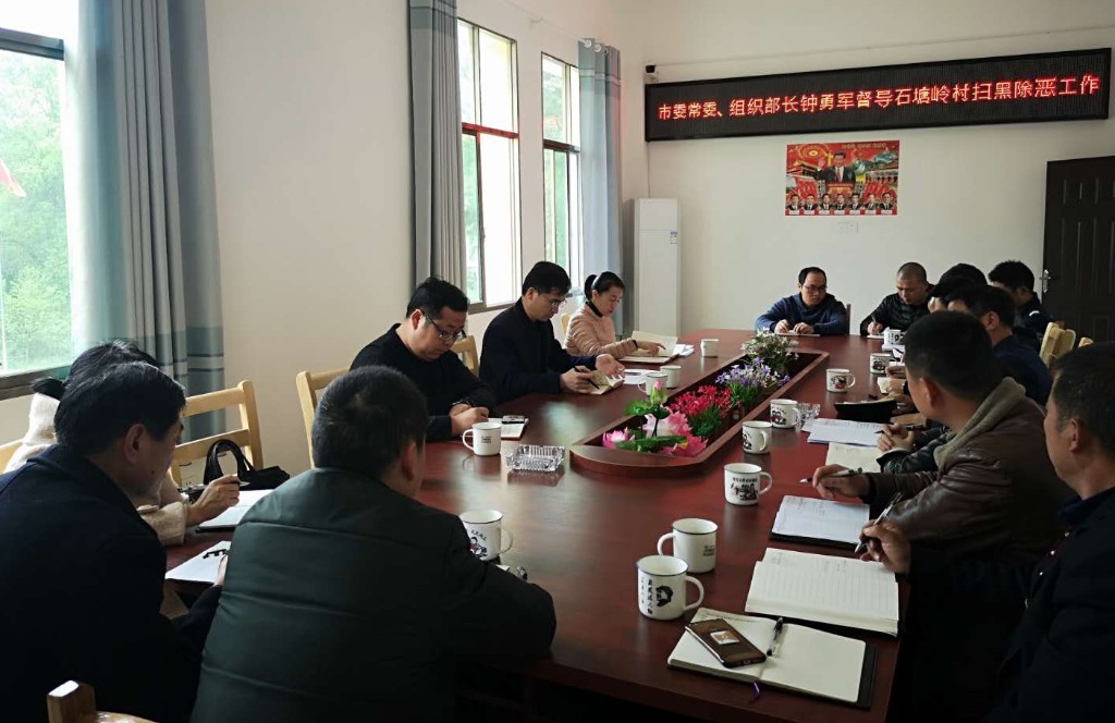 3月27日上午,市委常委、政法委书记廖胜云率市纪委、市委组织部、市民政局等单位相关负责人往石亭镇石塘岭村督导扫黑除恶专项斗争工作。