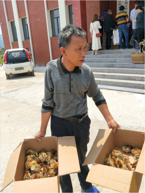 云岩居委会是吉泰农牧的第一站。此次送鸡苗活动,共计19个村(居)受益,目前吉泰农牧计划免费发放的15900只鸡苗和1000多公斤饲料,正有序发放给各村。吉泰农牧的负责人谢新启表示,“我们履行了我们的去年的承诺,将企业做大、将爱心做大,2018年发放了10000羽鸡苗,今年共发放15900羽鸡苗,我们将继续响应扶贫办号召,只要贫困户能够获得实实在在的好处,我们将继续加大扶持力度,并且为贫困户提供技术支持和培训,让贫困户能够稳定增收。