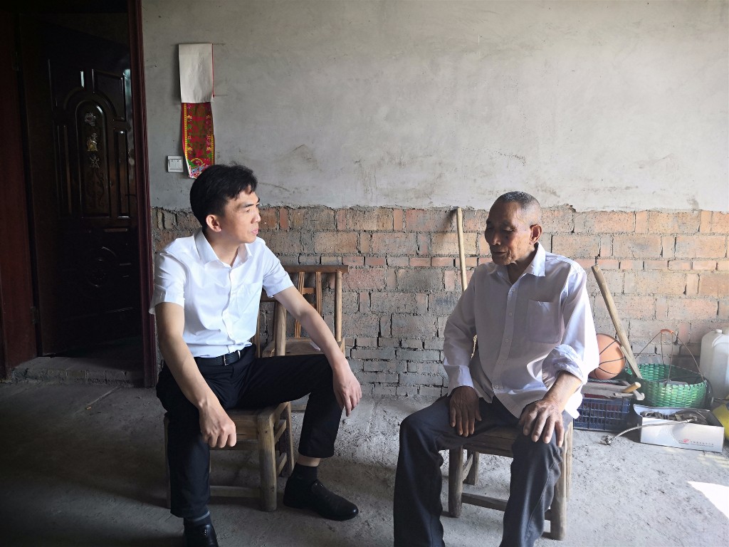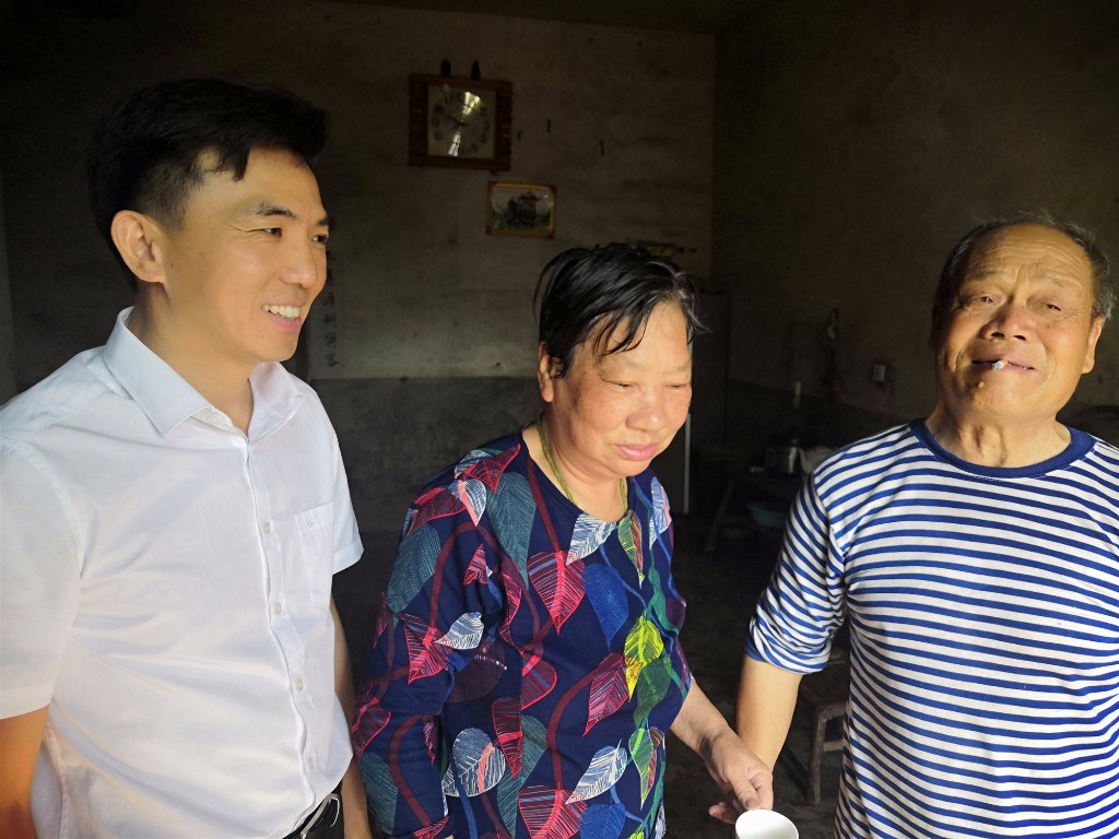 廖胜云先后来到所帮扶的贫困户喻志军、汤克全家中。他与喻志军促膝谈心,关切的询问喻志军妻子病情,了解医疗救助等帮扶措施的落实情况,仔细的询问了经济来源、生产及生活情况。在汤克全家中,汤克全的妻子紧紧握住廖胜云的手,与他聊起了家常,她的乳腺癌经过治疗后目前还算稳定,儿子儿媳在广东务工,孙儿上学,生活虽不富裕,但有盼头。