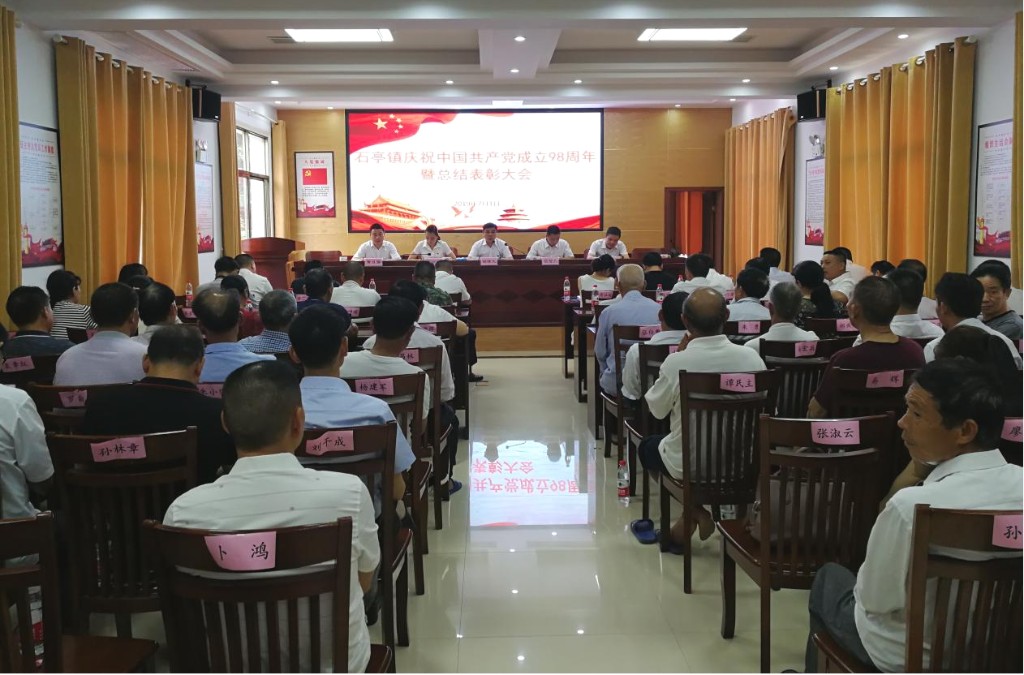 为切实发挥广大党员的先锋模范作用,加强党建引领,石亭镇党委借助庆祝中国共产党成立98周年的契机,组织镇属党组织书记、各村(居)总支委员、2019年度优秀党员、机关支部党员等96人召开总结表彰大会。