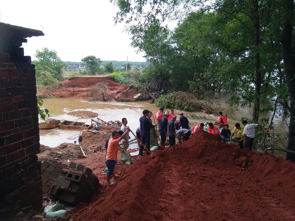 据气象部门预报,12日起我市又将迎来新一轮的降雨。石亭镇党委政府在上级各部门的科学调度指挥下,积极组织抢险队对漫堤后滑坡水损的堤坝进行抢险维修。由于堤坝被浸时间近2天之久,不能使用大型机械直达河边操作施工。由石亭镇政府号召自发参加抢修的民众逾200人,用铲子和编织袋装运着砂石。大家分工协作,现场一片热火朝天,用铁的意志、必胜的决心,势必在下一轮降雨之前将水损河堤抢修到位。
