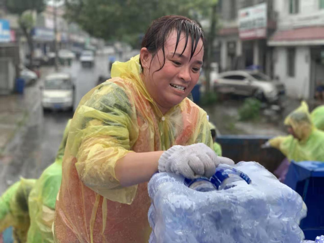 7月12日清晨,中粮可口可乐公司捐赠的3100件共74400瓶矿泉水抵达左权镇,醴陵市益爱志愿者协会和醴陵市汉服协会志愿者和左权镇镇村两级干部冒雨进行装卸,确保矿泉水在第一时间到达受灾群众手中。