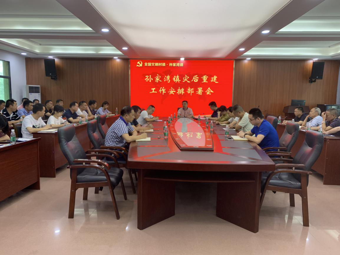 今天下午,孙家湾镇党委、政府再次召开抗洪救灾暨灾后重建工作调度会。
