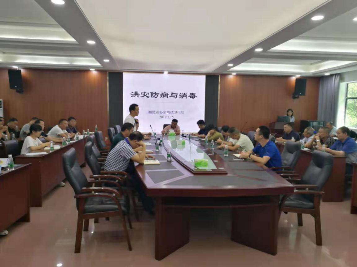 会议还进行了灾后卫生防疫与消毒培训,由镇卫生院副院长专题讲解。