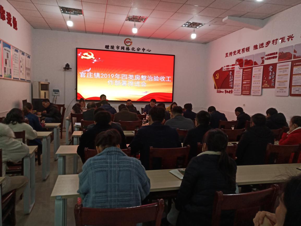 12月9日上午,官庄镇在机关二楼大会议室召开2019"四类房"整治验收工作推进会,全体机关干部、各村村书记及负责"四类房"整治工作有关同志参加会议。