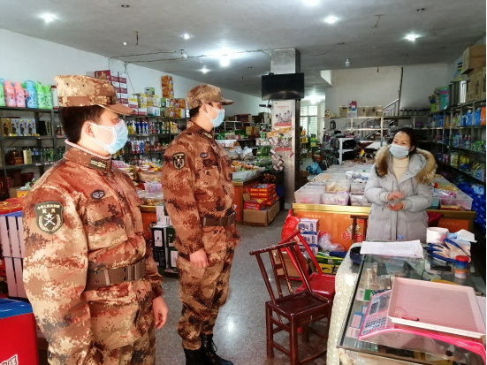 对人员容易聚集的棋牌室、宗教场所,嘉树民兵配合镇政府对麻将机进行封存,配合民宗部门对寺庙、教堂进行暂时关停,并每天进行巡逻。对涉及到民生的商场、超市,嘉树民兵逐户发放新型冠状病毒感染的肺炎健康科普小知识,监督营业人员做好防护消毒措施,签订“带头阻击疫情承诺书”。出动流动宣传车在全镇范围内进行“十不准”宣传。从思想上筑起疫情防护墙。