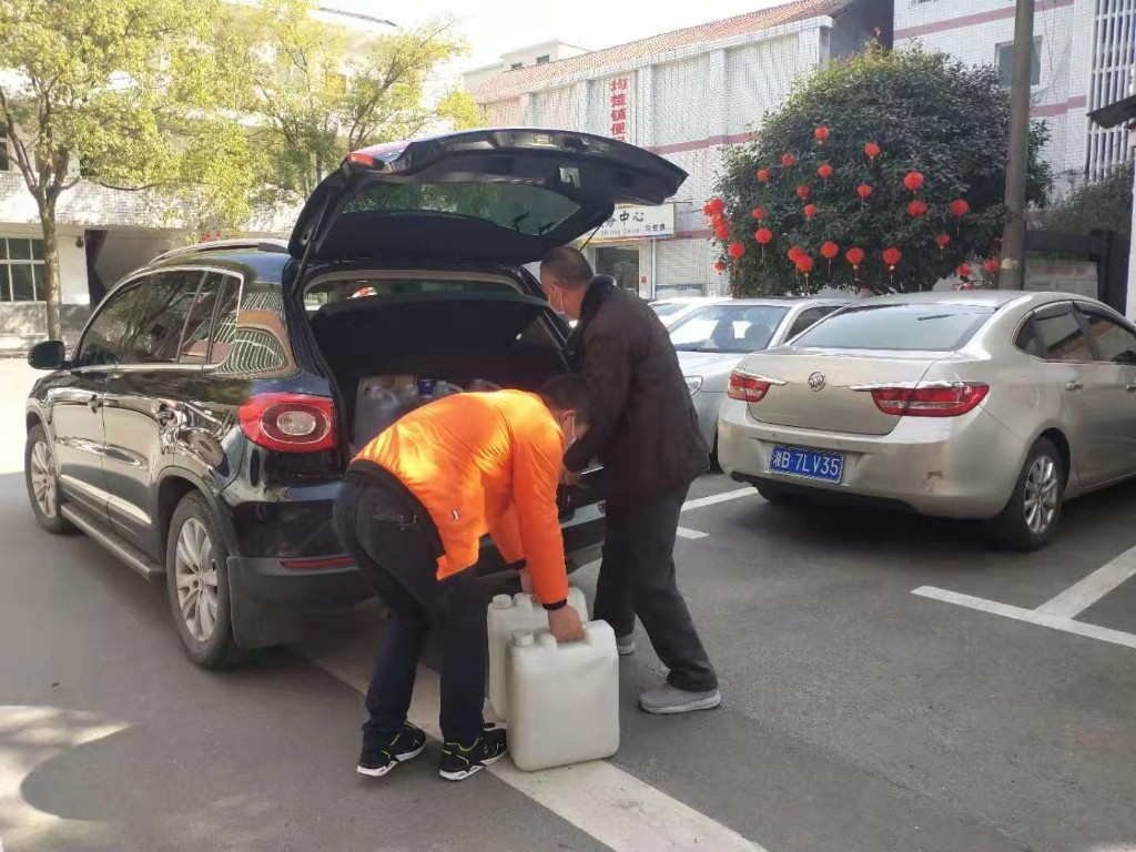 2月6日上午,在淅淅沥沥的小雨中,湖南省瑞祥护理服务有限公司的两辆小车,载着2100斤酒精与200个口罩,缓缓驶入了均楚镇政府的大门。