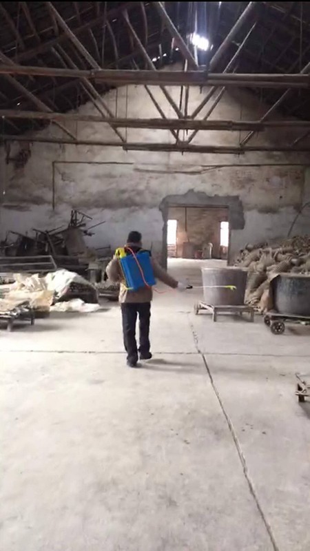 龙建桃对公司办公区域、厂房进行消毒