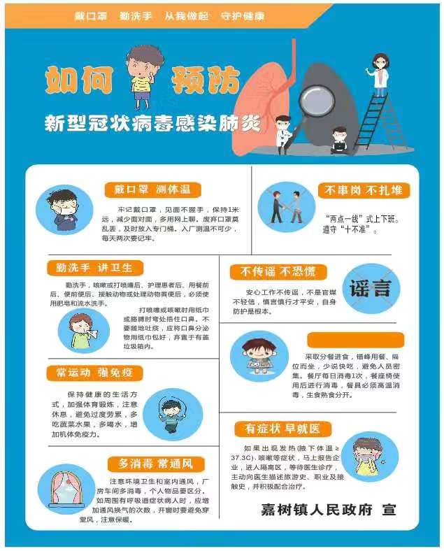 入眼看到“一张图”。针对企业复工复产疫情防控专门设计宣传图,对员工入厂、交流、用餐、身体锻炼等方面注意事项,以直观的图画搭配简洁的文字制作成画,在厂门口、车间、餐厅等员工出入场所进行张贴,使企业员工对疫情防控小知识“一看就懂”。