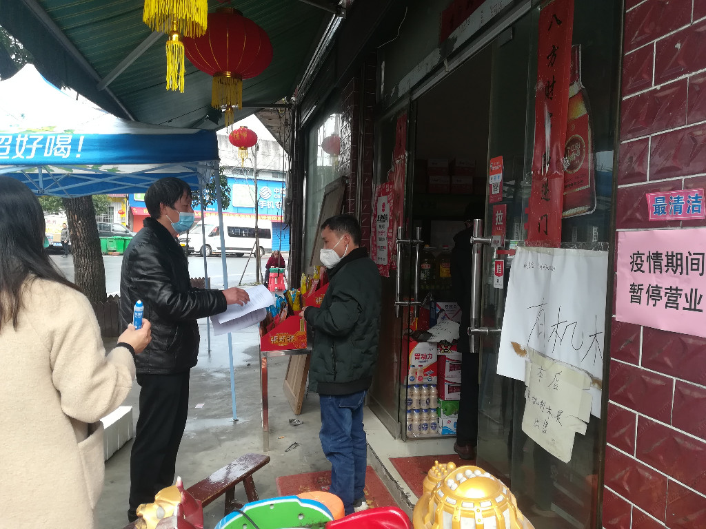 在集镇对营业的门店进行劝导要求暂停营业