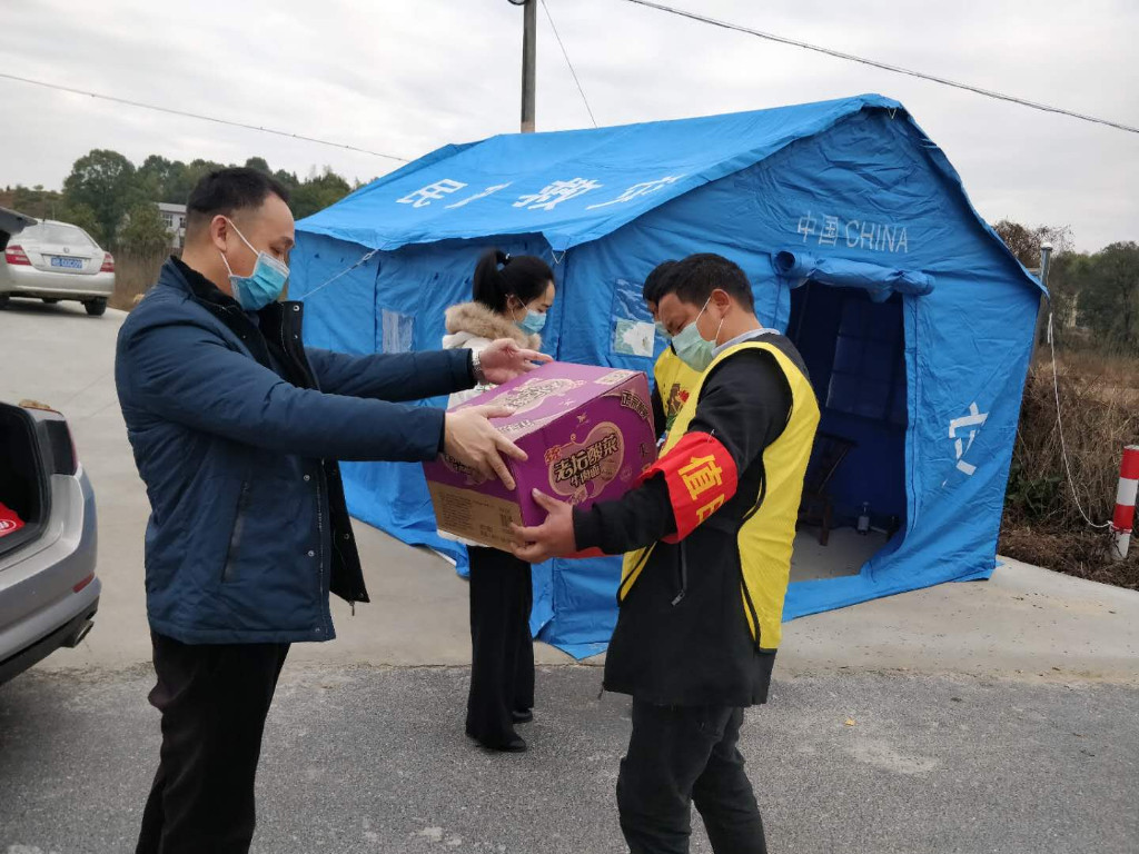 (枫林镇党委政府给检测点的工作人员送去慰问品)