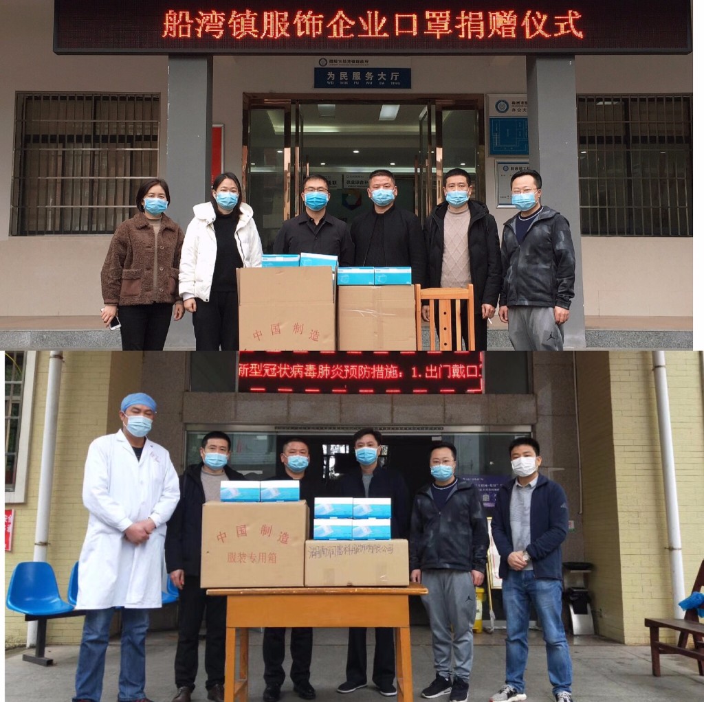 3月13日上午,船湾镇商会组织湖南鹭亿达服饰有限公司、湖南润富祥服饰有限公司,向船湾镇人民政府和船湾卫生院分别捐赠了2000个一次性防护口罩。