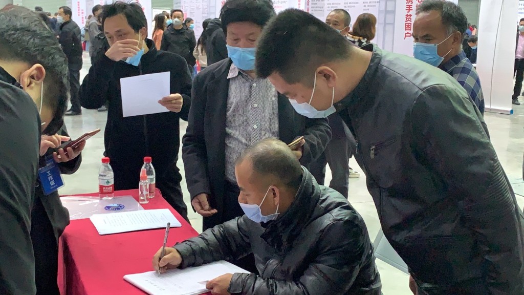 招聘会前,均楚镇工作人员便通过各驻村工作队准确掌握了贫困户的就业要求,并通过微信事先将相关岗位信息发送给相应的贫困户,以便他们能更有针对性地选择岗位。招聘会现场,前来应聘的人络绎不绝,均楚镇的贫困户早有“准备”,不慌不忙地到早已物色好的岗位前台处进行咨询和面试,不到10分钟,便有2位贫困户与相关企业签定了协议,军山村贫困户彭先良便是其中的一位。