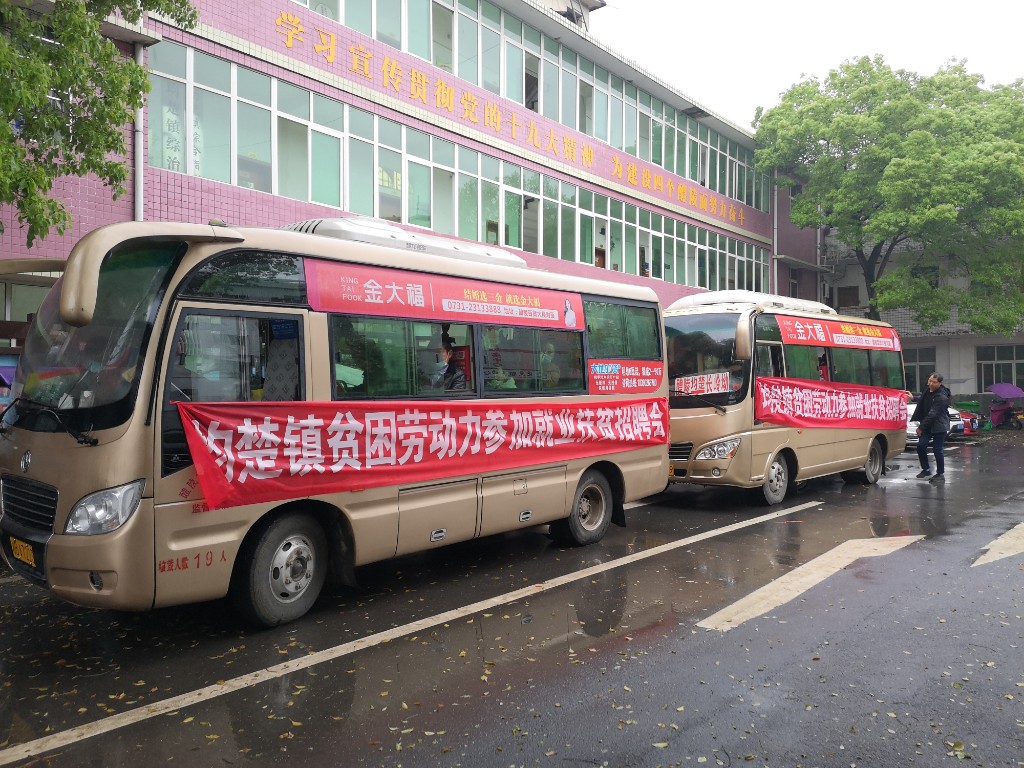 3月27日,均楚镇29名贫困户一大早便冒着细雨来到政府大院集合,乘坐“就业扶贫顺风车”,赶往醴陵市“百企千岗万人携手”就业扶贫攻坚暨人才招聘会的现场。