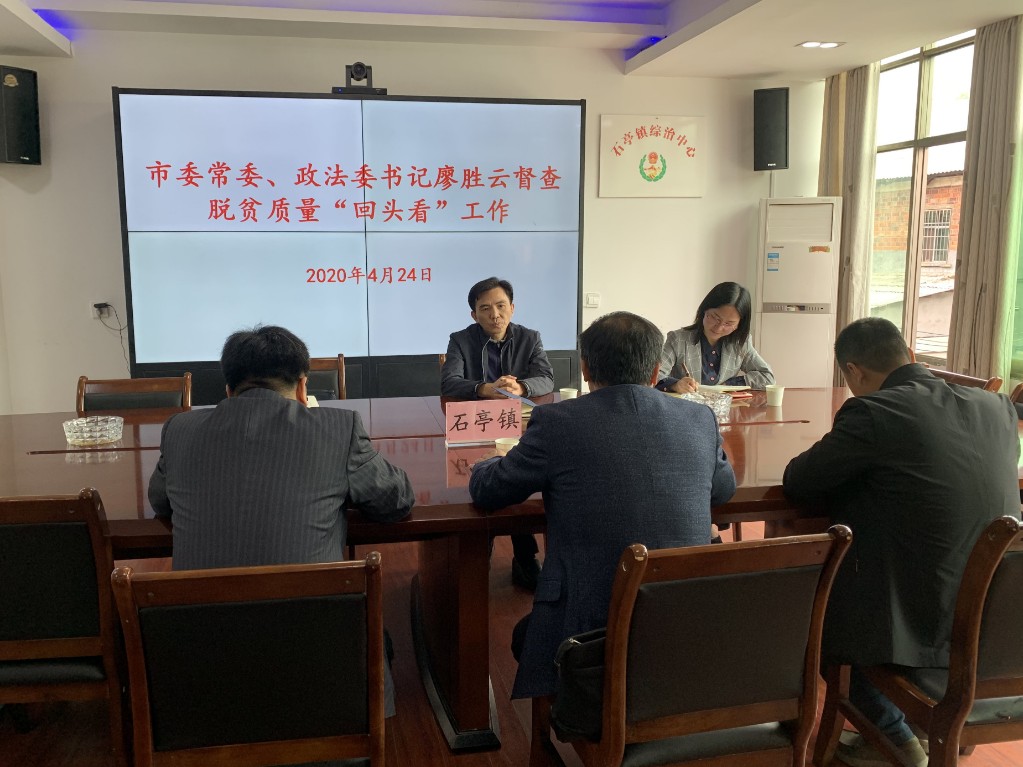 4月24日,市委常委、市委政法委书记廖胜云来到石亭镇永红村、长塘村、石塘岭村督导脱贫攻坚、复工复产工作。