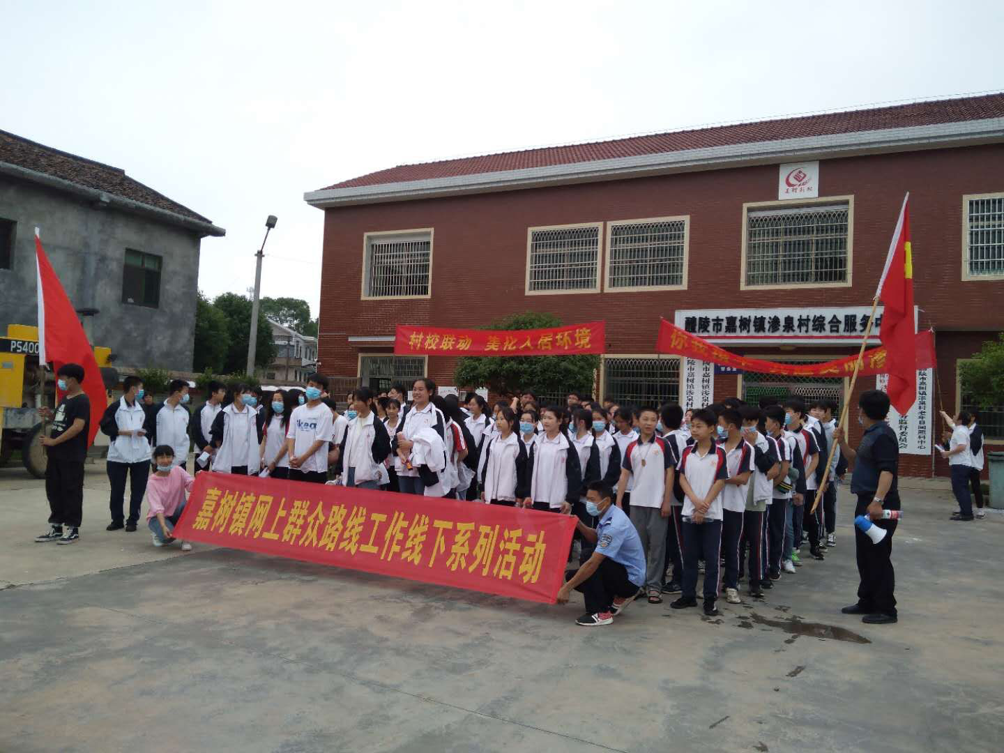 5月6日下午,嘉树中学联合渗泉村村委会,组织初二团员及部分教师开展“美化人居环境,共建美丽渗泉”沿路徒步宣传活动。