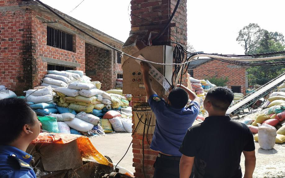 经查,该塑料厂生产原辅材料主要来自收购的废旧塑料,来源不清,属于典型的“小散乱污”企业。泗汾镇人民政府执法人员现场依法对该厂经营者刘某展开了询问调查笔录,为了防止该厂擅自生产,执法人员现场对生产线一台配电箱进行了查封。