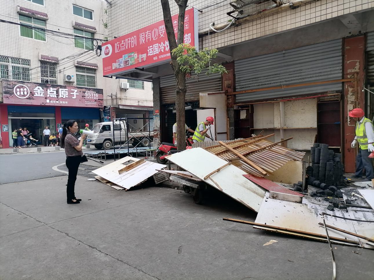 为进一步落实市委、市政府创建国家卫生城市工作目标,回应群众期盼,确保我办创建工作有序开展,在前期做好劝导工作与下发整改通知的基础上,我办组织办事处查违中队、城管中队、拆除公司、保洁公司等70余人,刚柔相济,对陶瓷花炮大市场一期临建设路(创国卫暗访反馈点位)违法搭建进行集中拆除。
