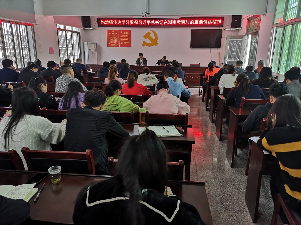 10月9日,均楚镇召开全镇干部大会,传达学习习近平总书记在湖南考察时的重要讲话指示精神和基层代表座谈会上讲话精神,认真落实省、市领导干部会议精神,全面部署贯彻落实工作,镇村干部共80余人参会。