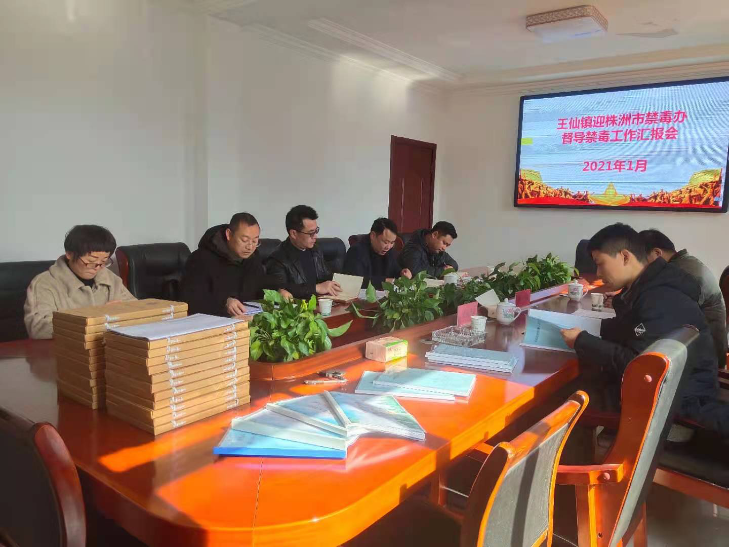 1月13日,株洲市禁毒办谭钢、吴振邦等领导一行在市禁毒办负责人田春燕陪同下莅临王仙镇检查督导禁毒工作。王仙镇党委书记文庆、镇长余志勇、党委副书记钟征陪同。