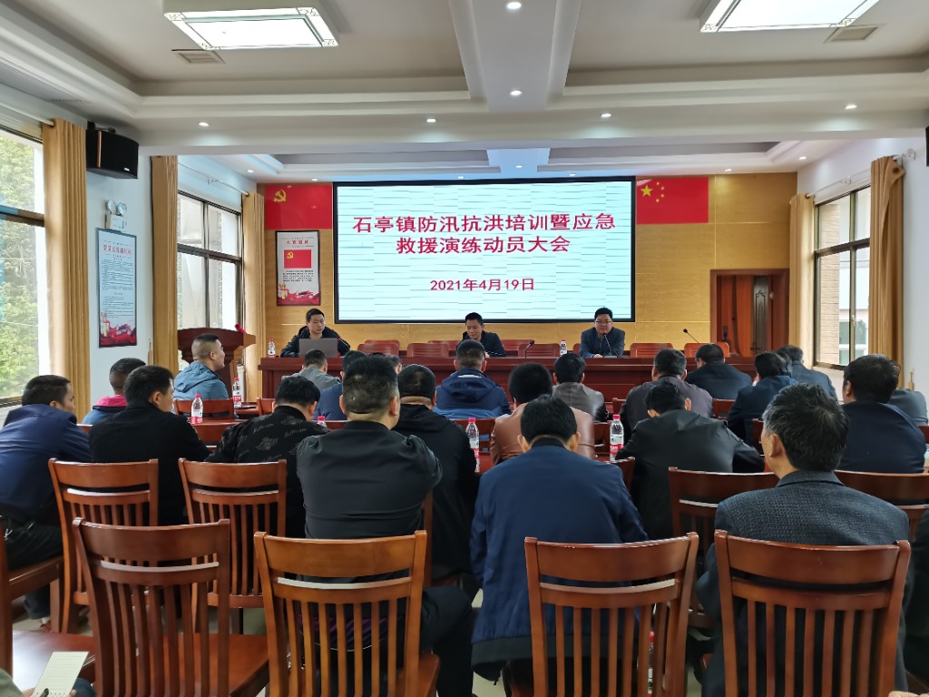 为提高防汛抢险救灾应急能力,在险情来临时能迅速反应,高效应对,确保人民群众生命安全与财产安全。近日,石亭镇组织开展防汛抗洪知识培训暨应急救援演练。镇防汛指挥部、镇党政办、应急办、河长办、各村防汛工作负责人、卫生院、水管站负责人等共计60人参与培训和救援演练。