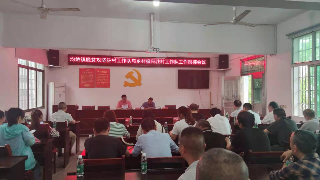 为贯彻落实党中央关于实现巩固拓展脱贫攻坚成果同乡村振兴有效衔接的重要决策部署,做好驻村工作队员新老交接工作,动员和激励新一轮乡村振兴工作队弘扬伟大脱贫攻坚精神,助力实现巩固拓展脱贫攻坚成果同乡村振兴有效衔接,5月13日上午,均楚镇召开脱贫攻坚驻村工作队与乡村振兴驻村工作队工作衔接会,总结回顾我镇驻村工作队脱贫攻坚工作历程,研究部署推动脱贫攻坚与乡村振兴有效衔接。会议由均楚镇党书记邓元新主持,各村(社区)脱贫攻坚驻村工作队、各村(社区)乡村振兴驻村工作队、各村(社区)扶贫专干共计60余人参加会议。