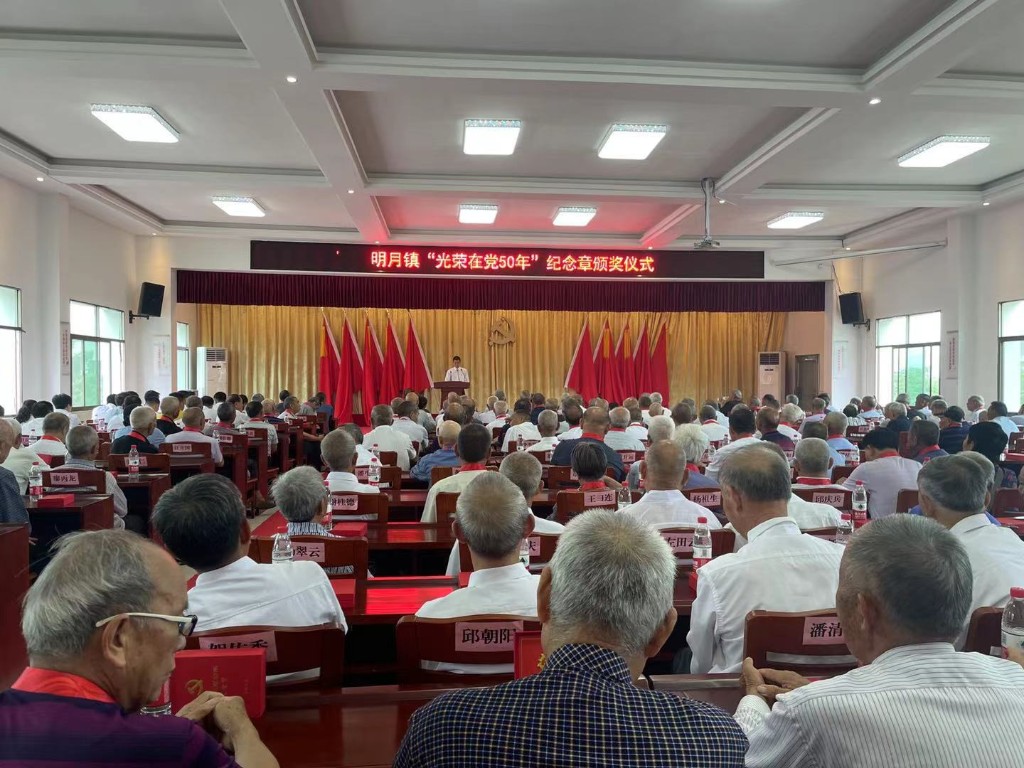 一百年征程浩荡,五十载初心如磐。6月21日上午9:00,明月镇隆重举行“光荣在党50年”纪念章颁发仪式,向167名老党员现场颁发“光荣在党50年”纪念章。明月镇党委班子成员,各村(社区)书记参加颁发仪式。