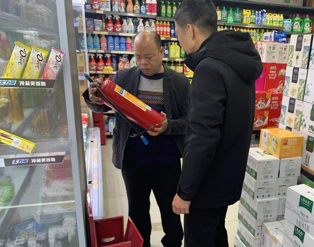 在各商铺内,工作人员详细检查了消防器材配备使用、安全警示标志设置、疏散通道及安全出口设置、电气线路铺设等情况,提醒营业人员规范使用烤火炉等取暖设备。