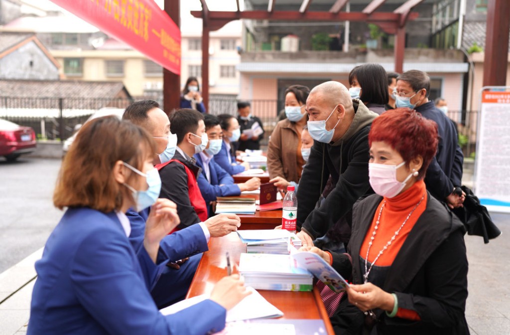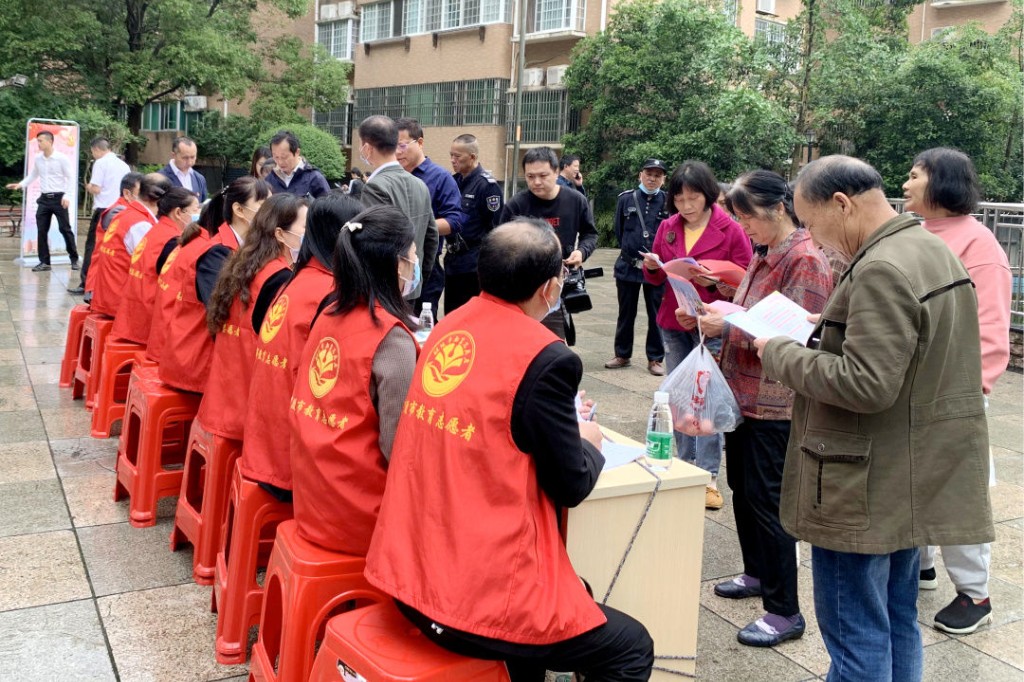 这是马放塘社区的"家校共建:百校联百小区、万名党员进万家"集中活动现场。同一时间,在宴南都小区、滨江花园小区、车顿桥社区等活动现场,同样吸引了大量居民前来咨询。