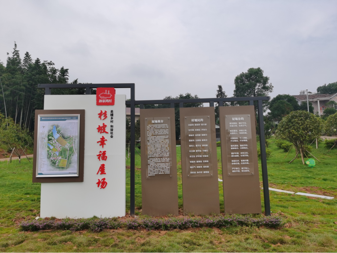 精准精细谋划蓝图。一是充分调研,科学选址。孙家湾村杉坡组作为全市首批“幸福屋场”示范创建点,东接106国道,西邻“两山”铁路,组民50户206人,有党员8人、大学生14人、致富带头人5人。辖区面积422亩,地形错落有致、自然成环,具有得天独厚的自然和人文环境。二是就地取材,展现特色。杉坡人注重家风家教,尊老爱幼,与人为善,新中国成立以来“无违法犯罪、无黄赌毒、无失业人员”,是名副其实的乡风文明、乡村治理示范组。还有特色鲜明的我家味道农庄、红色底蕴深厚的金星庵、省级优秀农业公司、配备完善的“屋场三小”等。三是因地制宜,规划先行。广泛征求党员、群众、乡贤意见,在保留原有乡村风貌的基础上,设计了新时代文化广场、农耕文化陈列室、产业文化墙、幸福花海等52个小景,涵盖经济产业、文化休闲、生态建设等多方面,全方位、多层次描绘了幸福屋场的美好蓝图。