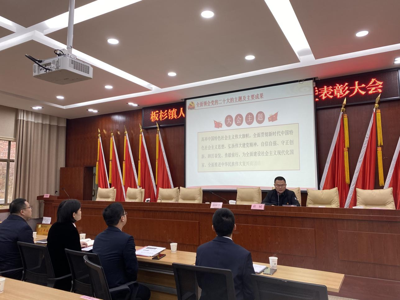 1月16日,板杉镇召开党的二十大精神宣讲会暨2022年度总结表彰大会,板杉镇全体班子成员、机关干部、部分驻镇企事业单位负责人、村干部、党员代表、先进个人等参加会议。