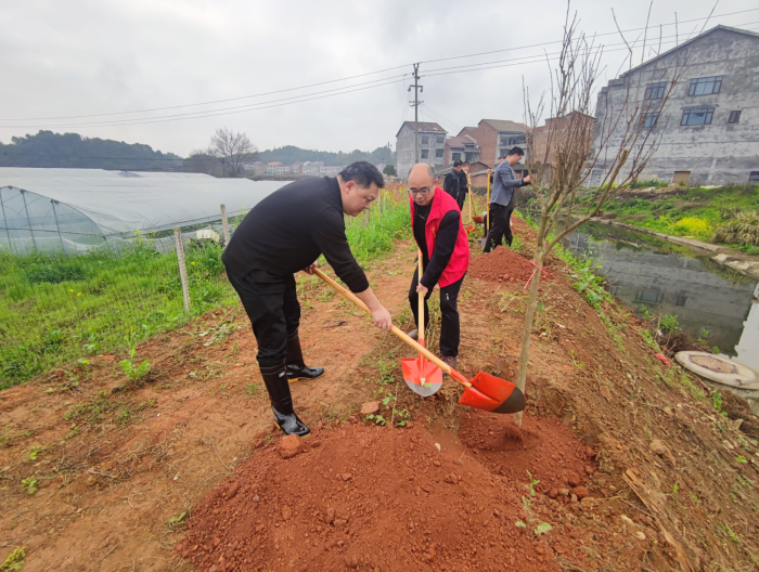 活动现场,大家热情高涨,干劲十足,纷纷撸起袖子全身心投入到植树活动中。在专家现场技术教学指导下,两三人一组,分工协作,配合默契,一同挖坑、放苗、培土、整平、浇水......每个步骤都有条不紊、扎实有序,确保栽种一颗、成活一棵、绿化一片,忙得不亦乐乎,呈现出一派热火朝天的劳动景象。经过一个上午的辛勤劳动,司徒村河堤边上一百棵紫薇树整齐排列、迎风而立。
