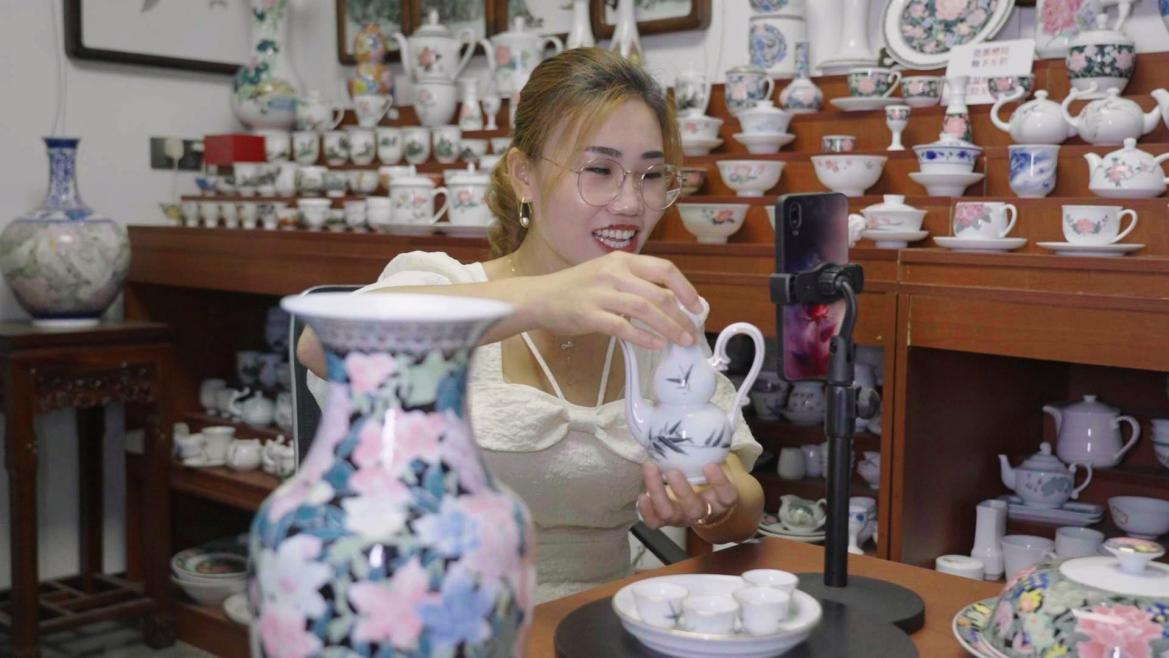 “直播间朋友们,大家好,今天为大家介绍的是来自醴陵华联瓷业的釉下五彩瓷,这种瓷的图案是彩画上去后烧至而成,摸起来没有凹凸感,具有醴瓷的薄如纸、白如玉、明如镜、声如磬鲜明特征,原湖南省委书记张庆伟还曾专门推介过……。”在直播间中,随着新树村“两委”干部童敏芝主播的热情介绍,这款釉下五彩日用瓷售量骤增,不到5分钟的时间里,就卖出10单20件。