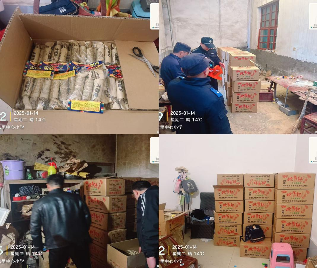 2025年1月14日上午10时许,接线索举报,李畋镇新树村刘某某、吴某某家有人从事非法加工生产烟花爆竹。李畋镇综合执法大队立即行动,对刘某某、吴某某住宅进行检查,经检查发现两处住宅的后面房间为加工大西炮场所,现场查获成品大西炮182件(约54600个),另有若干标签和包装纸等原材料,目前该案件由公安机关侦办之中。