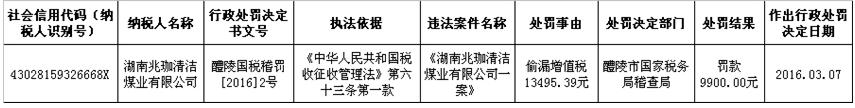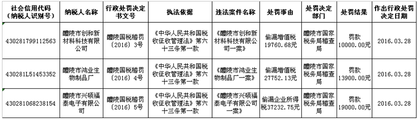 醴陵市国家税务局2016年3月税务行政处罚事项公示
