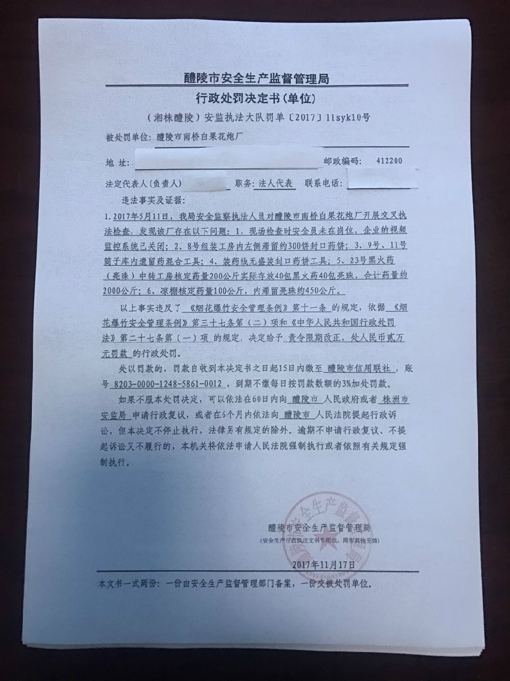 (湘株醴陵)安监执法大队罚单[2017]llsyk10号
