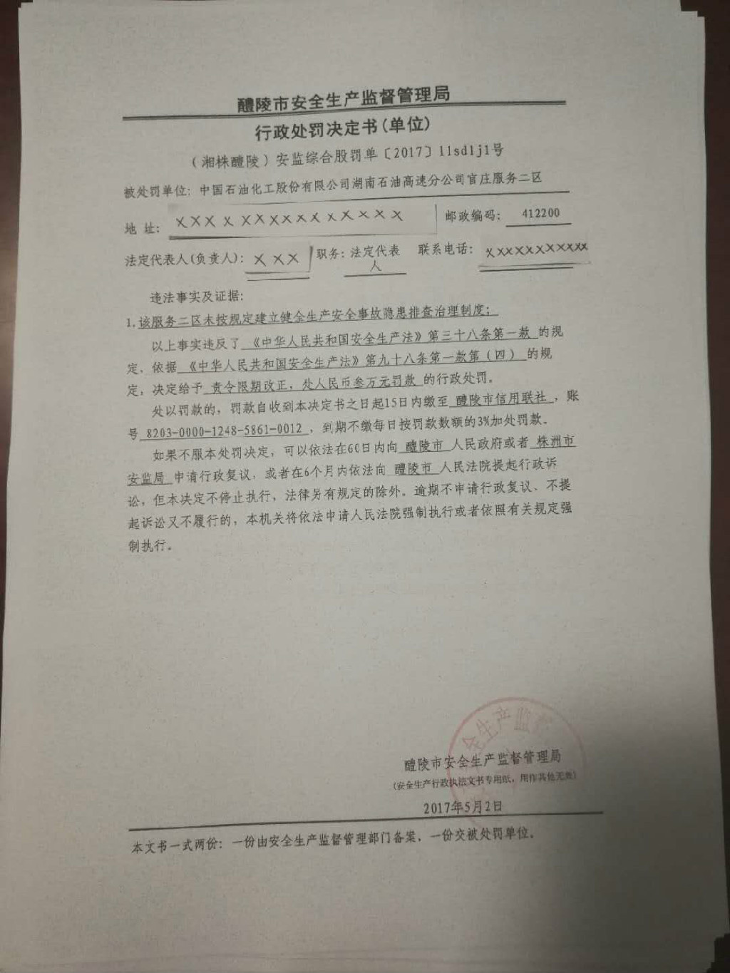 (湘株醴陵)安监综合股罚单〔2017〕llsdlj1号