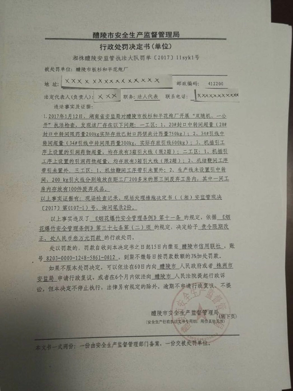 (湘株醴陵)安监执法大队罚单〔2017〕llsyk1号