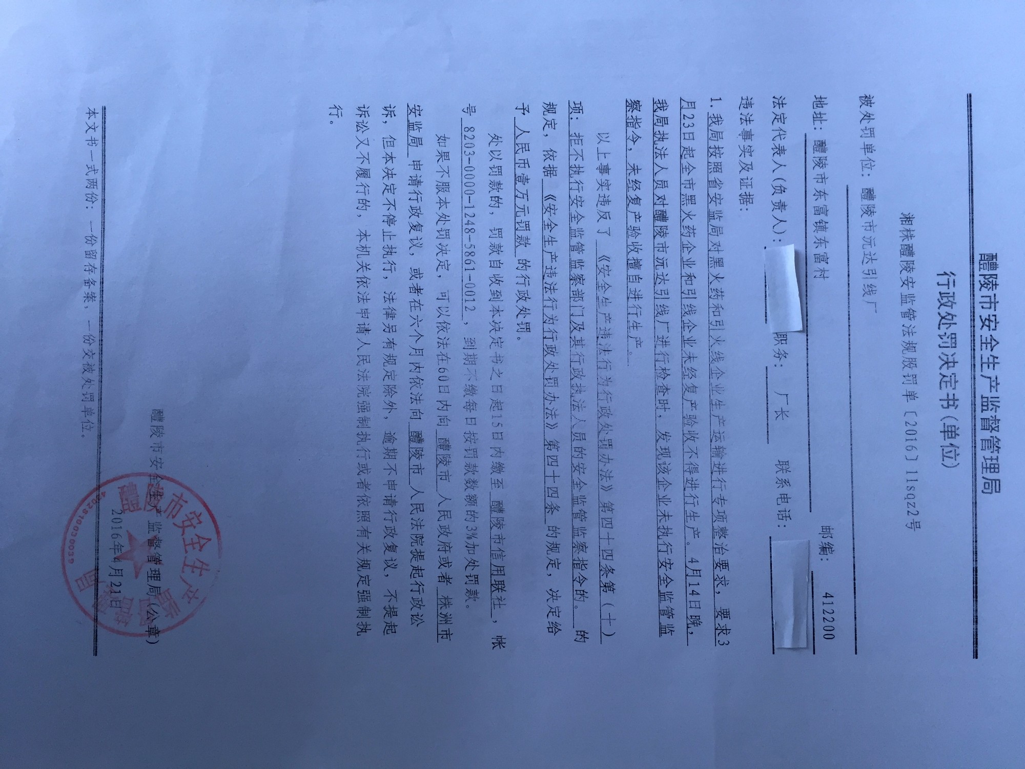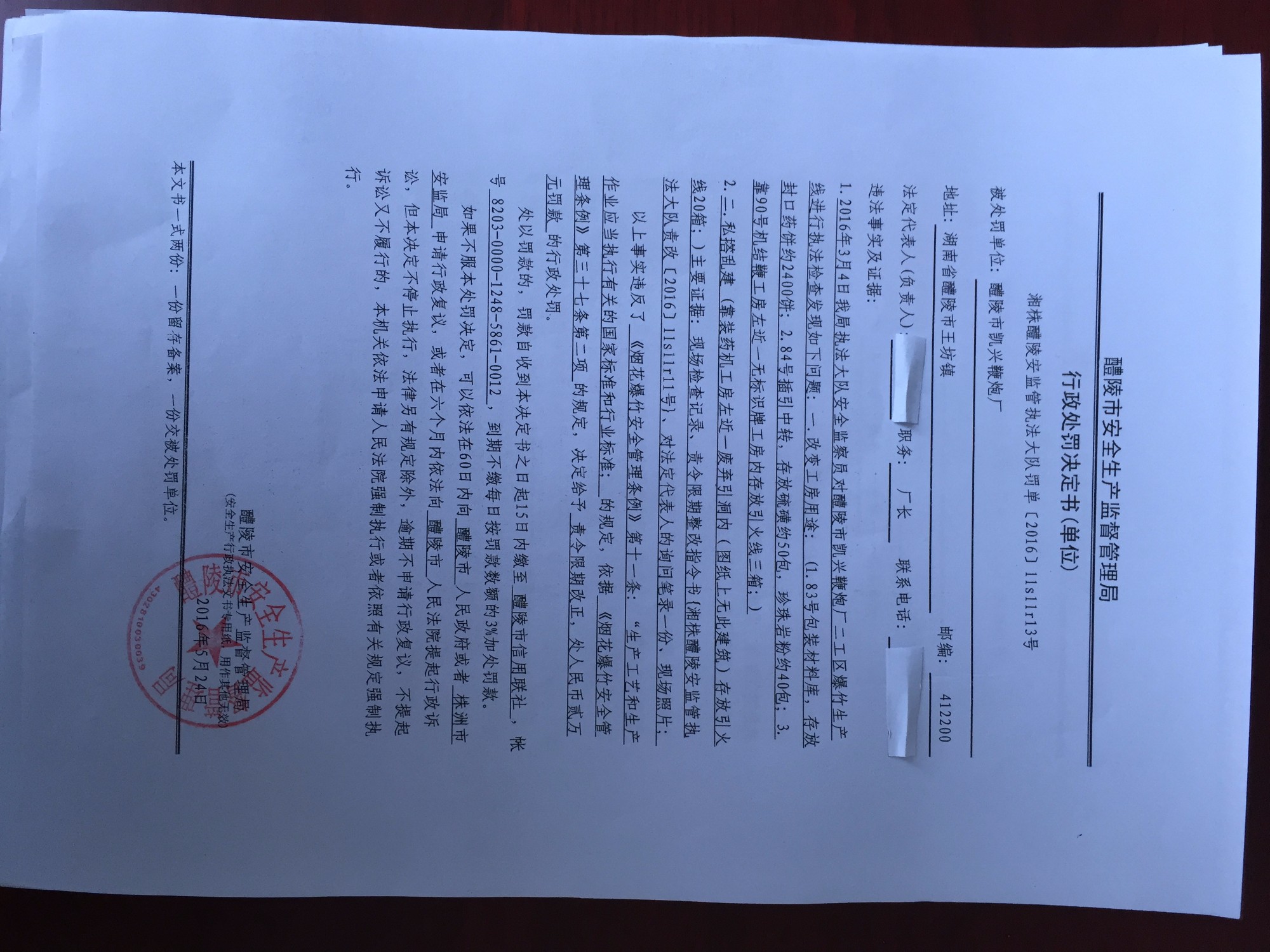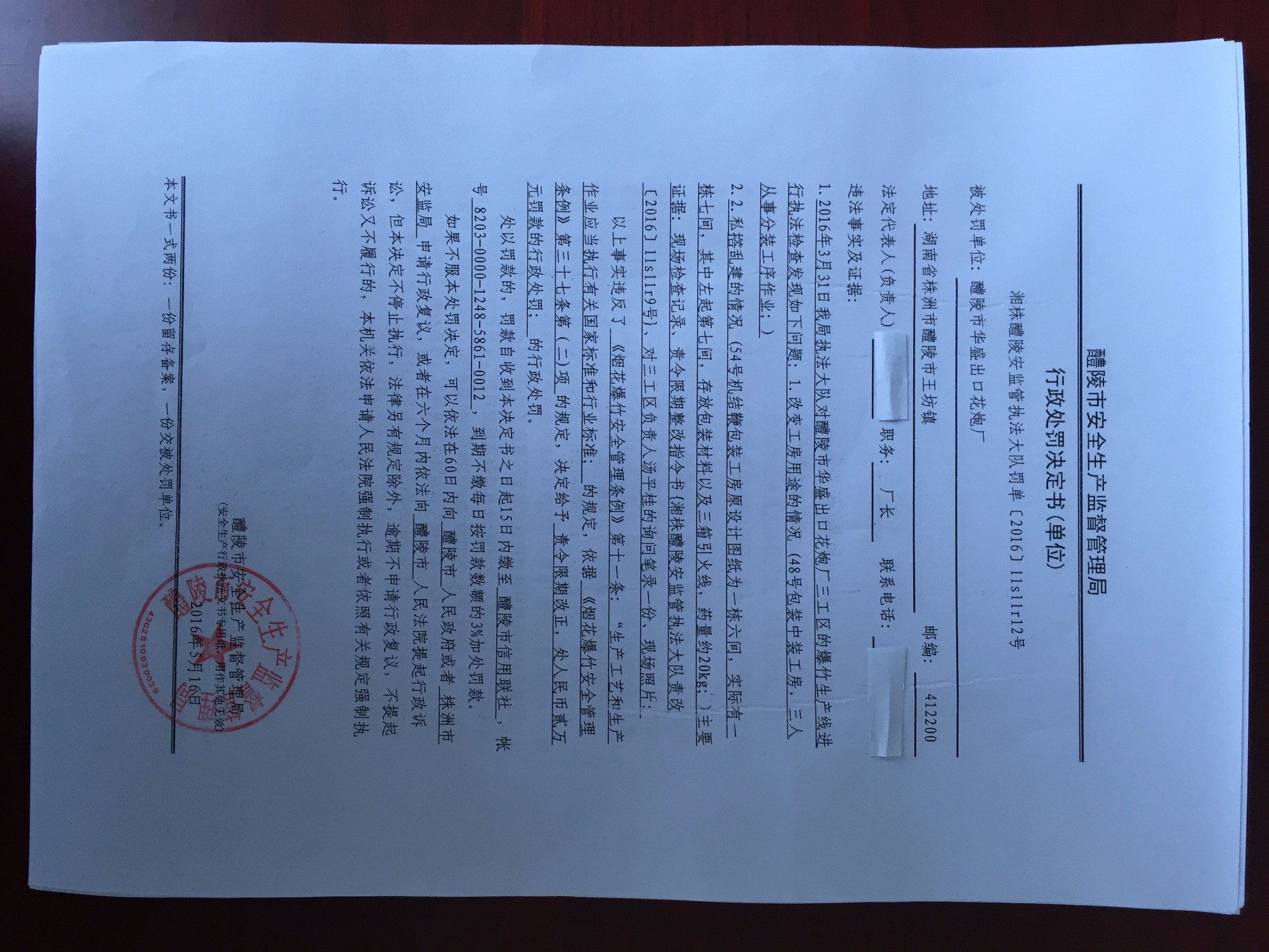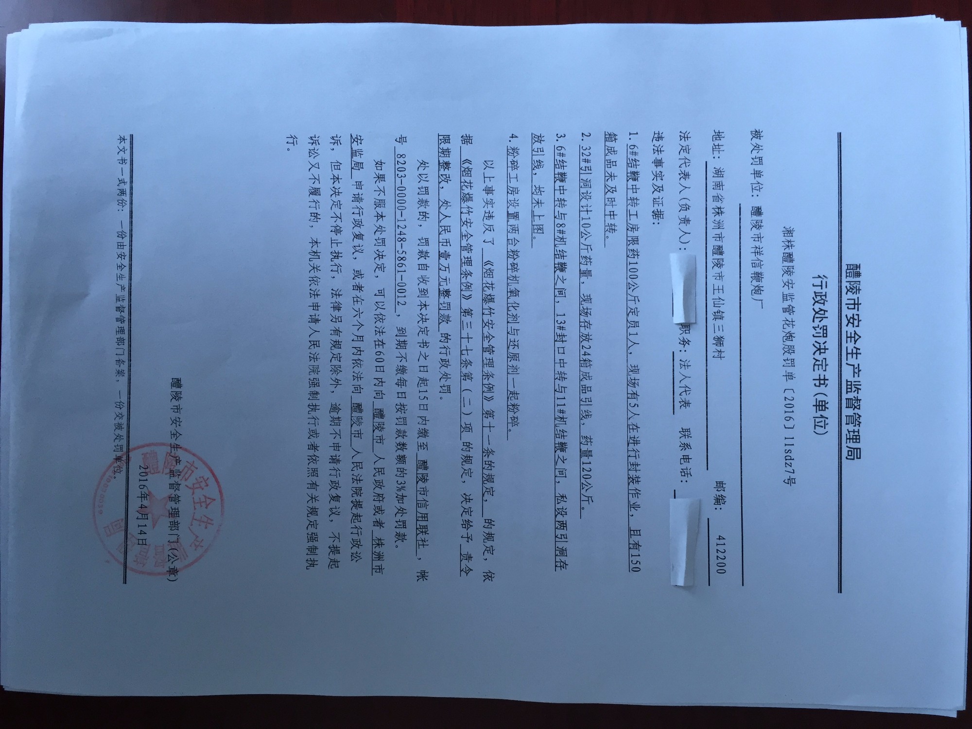 (湘株醴陵)安监执法大队罚单〔2016〕