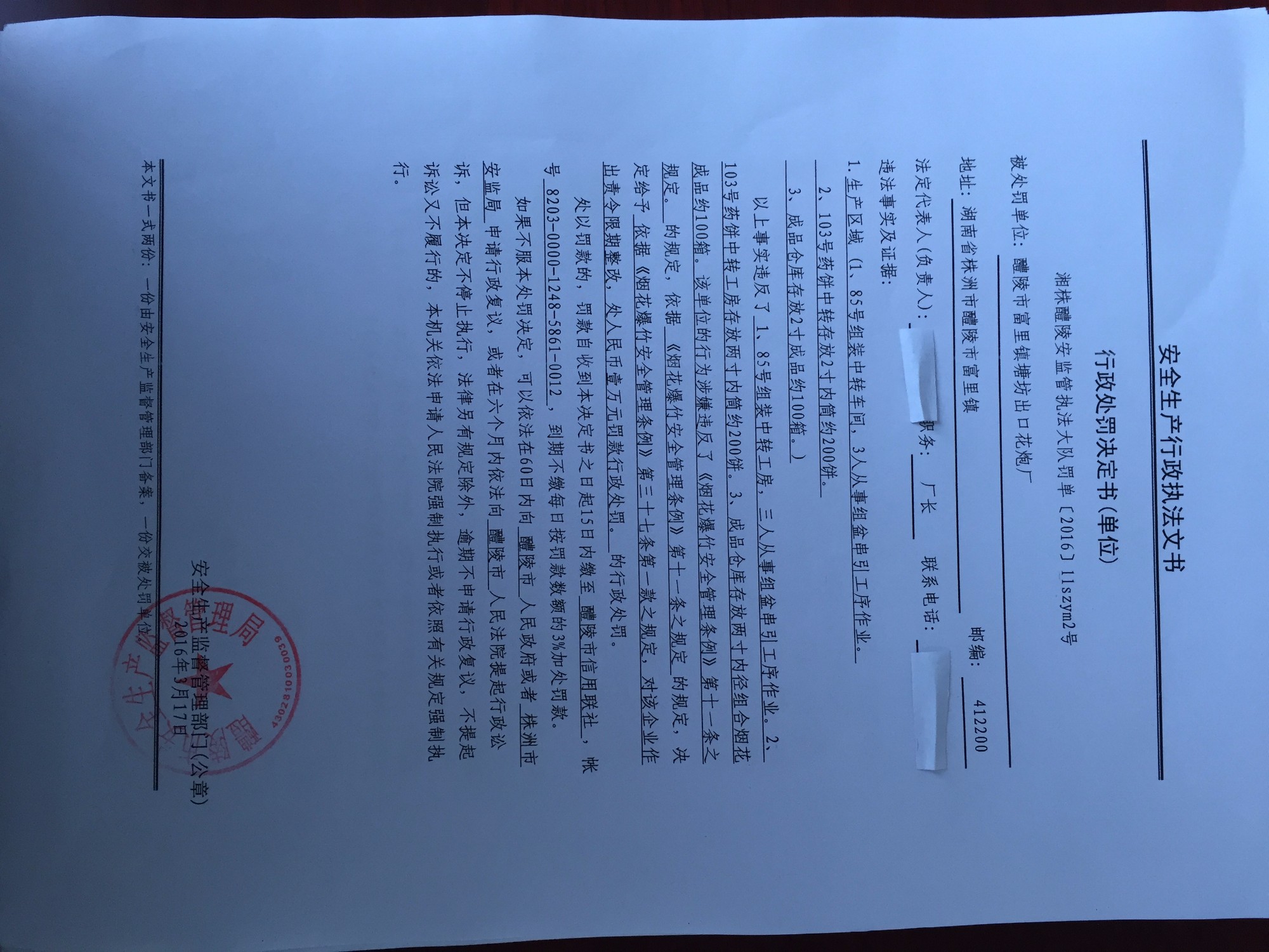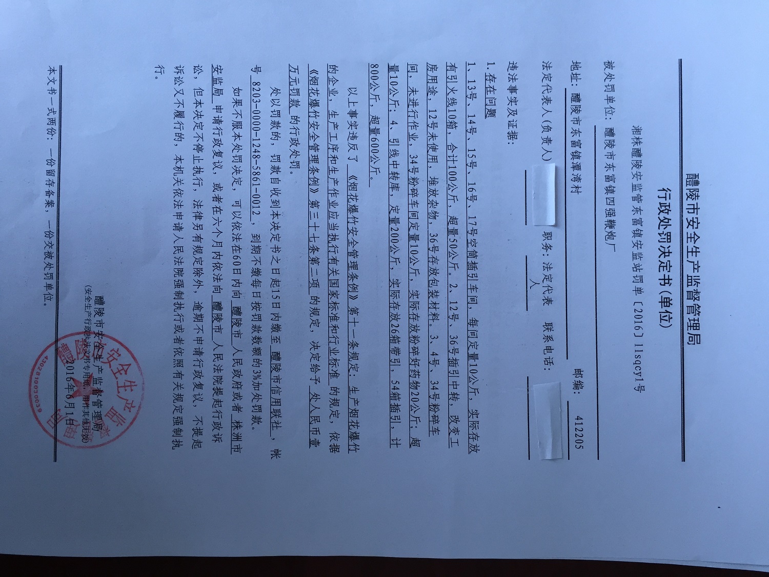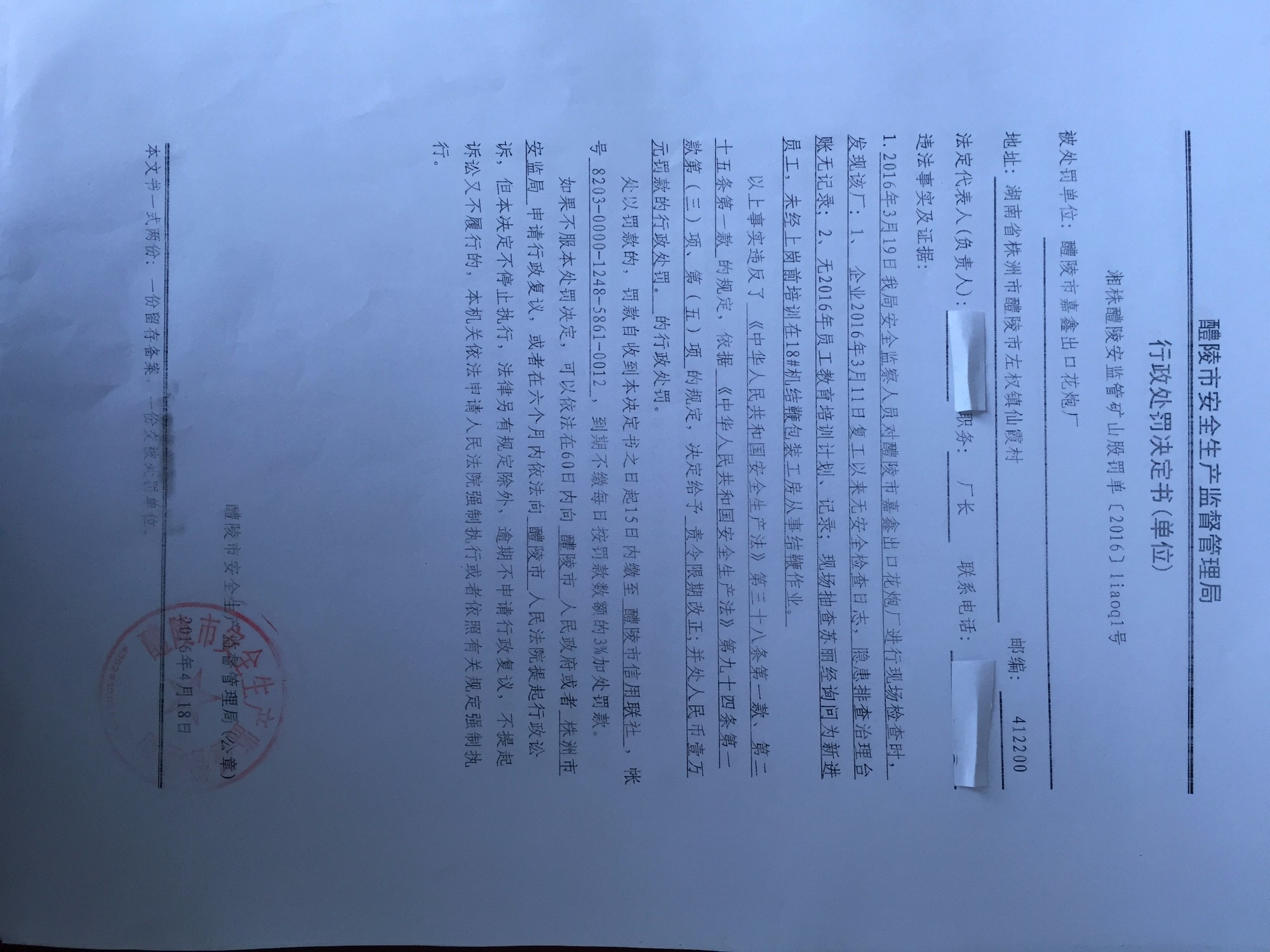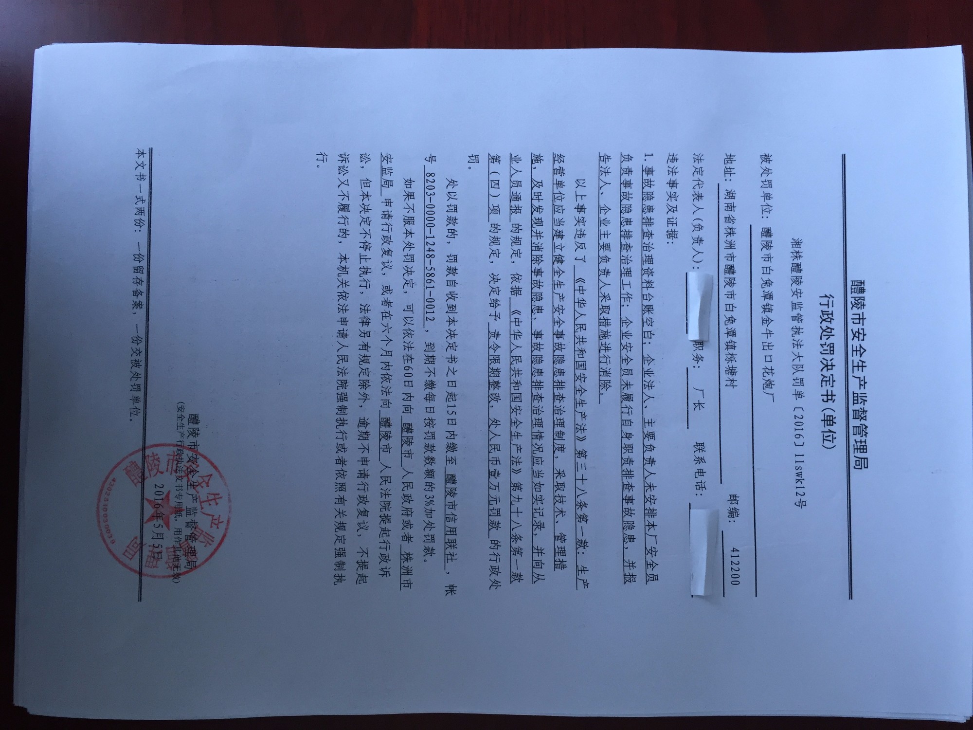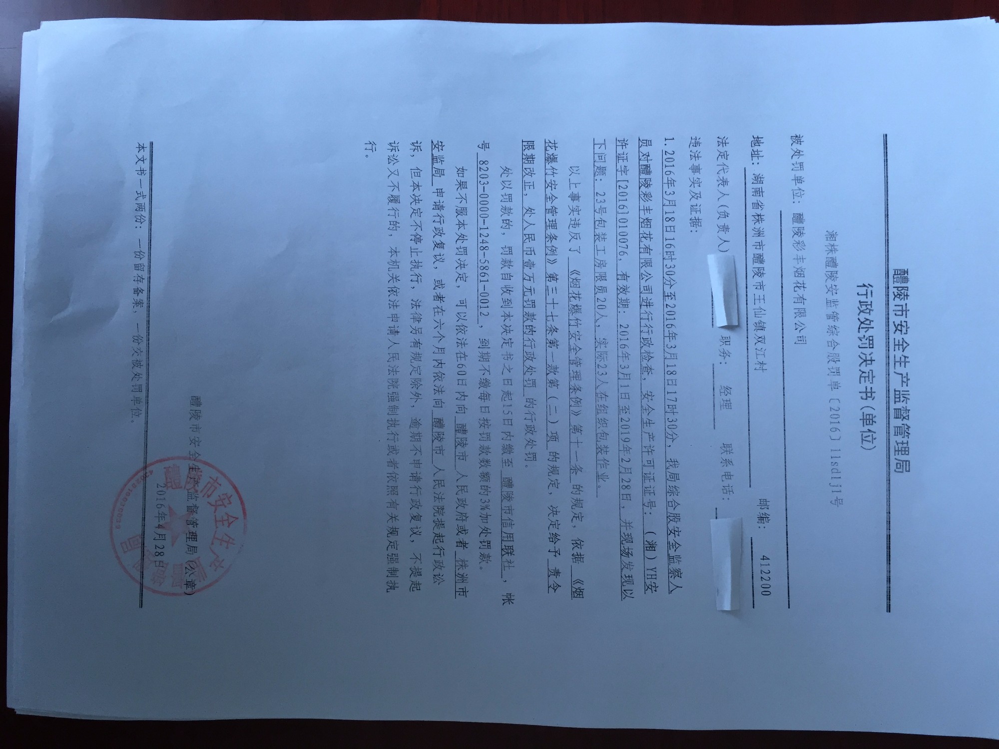 (湘株醴陵)安监执法大队罚单〔2016〕