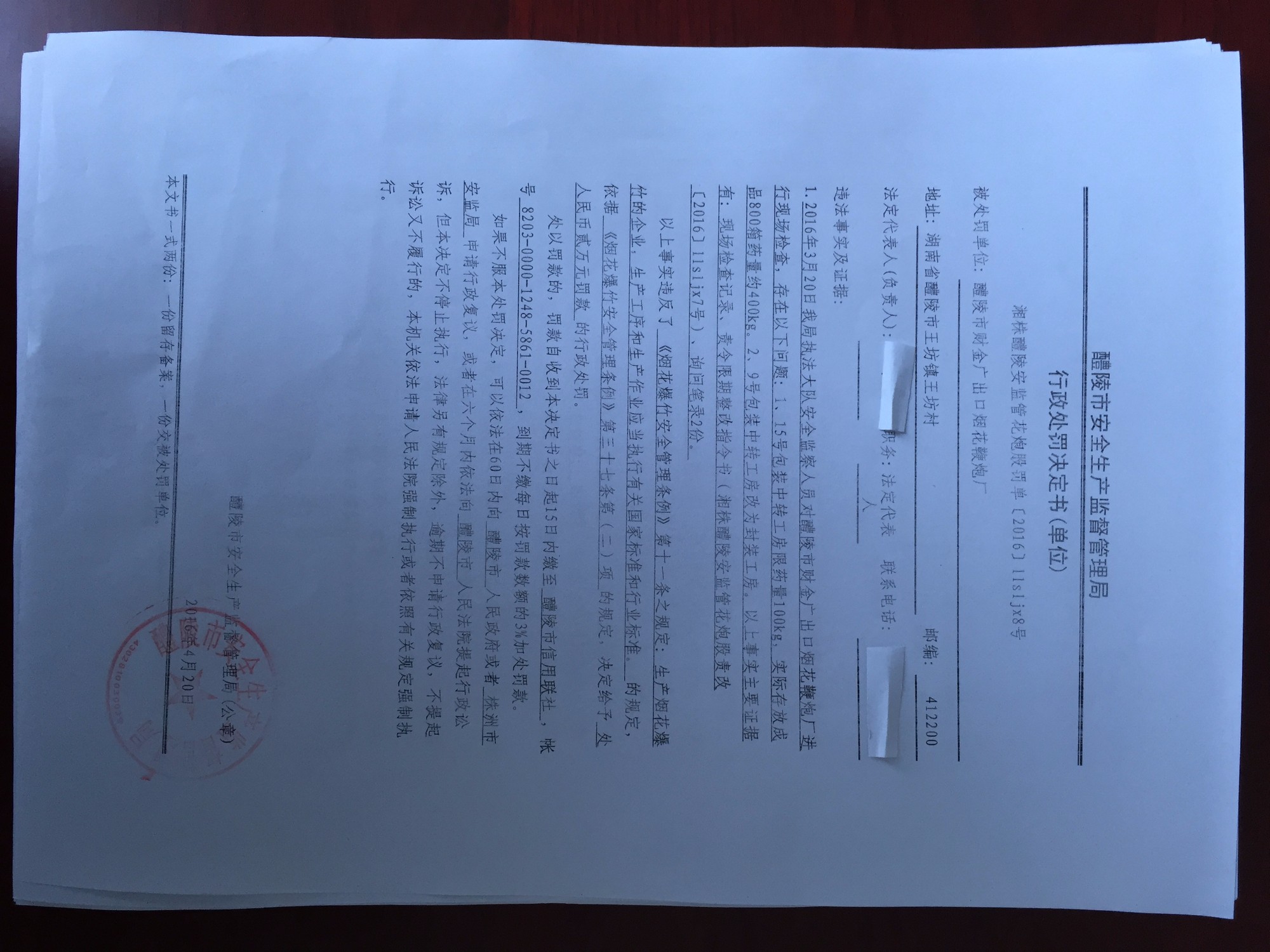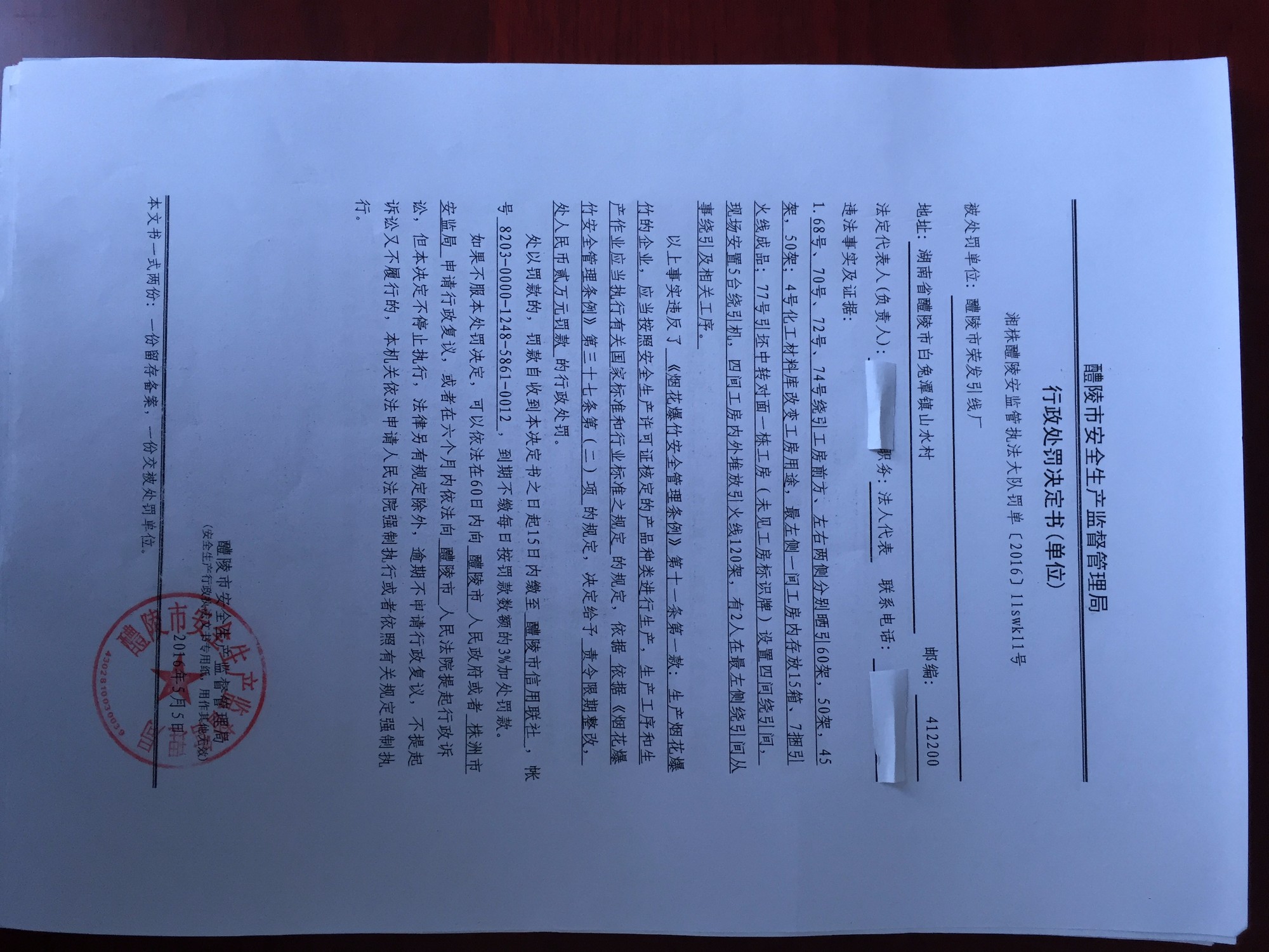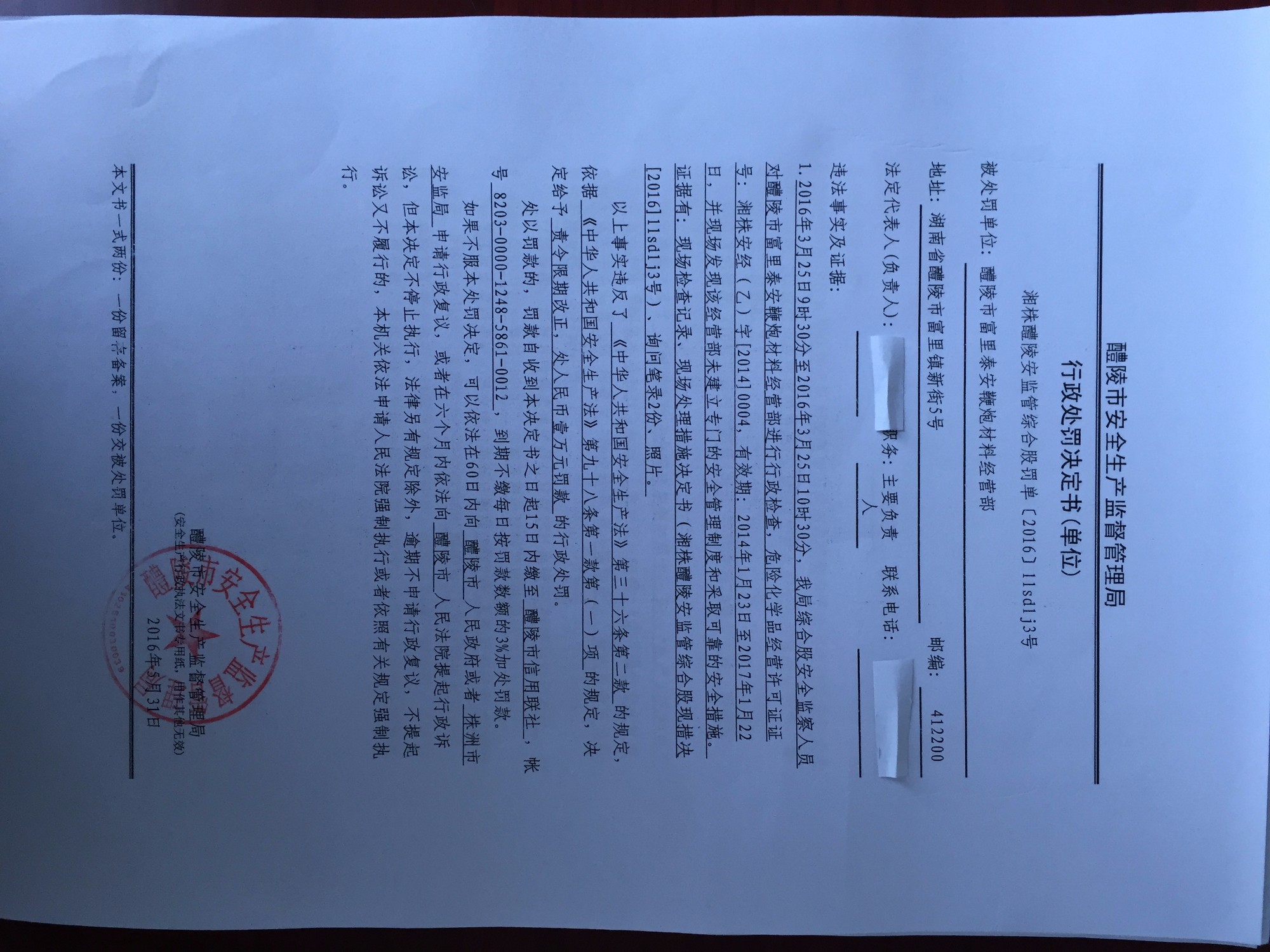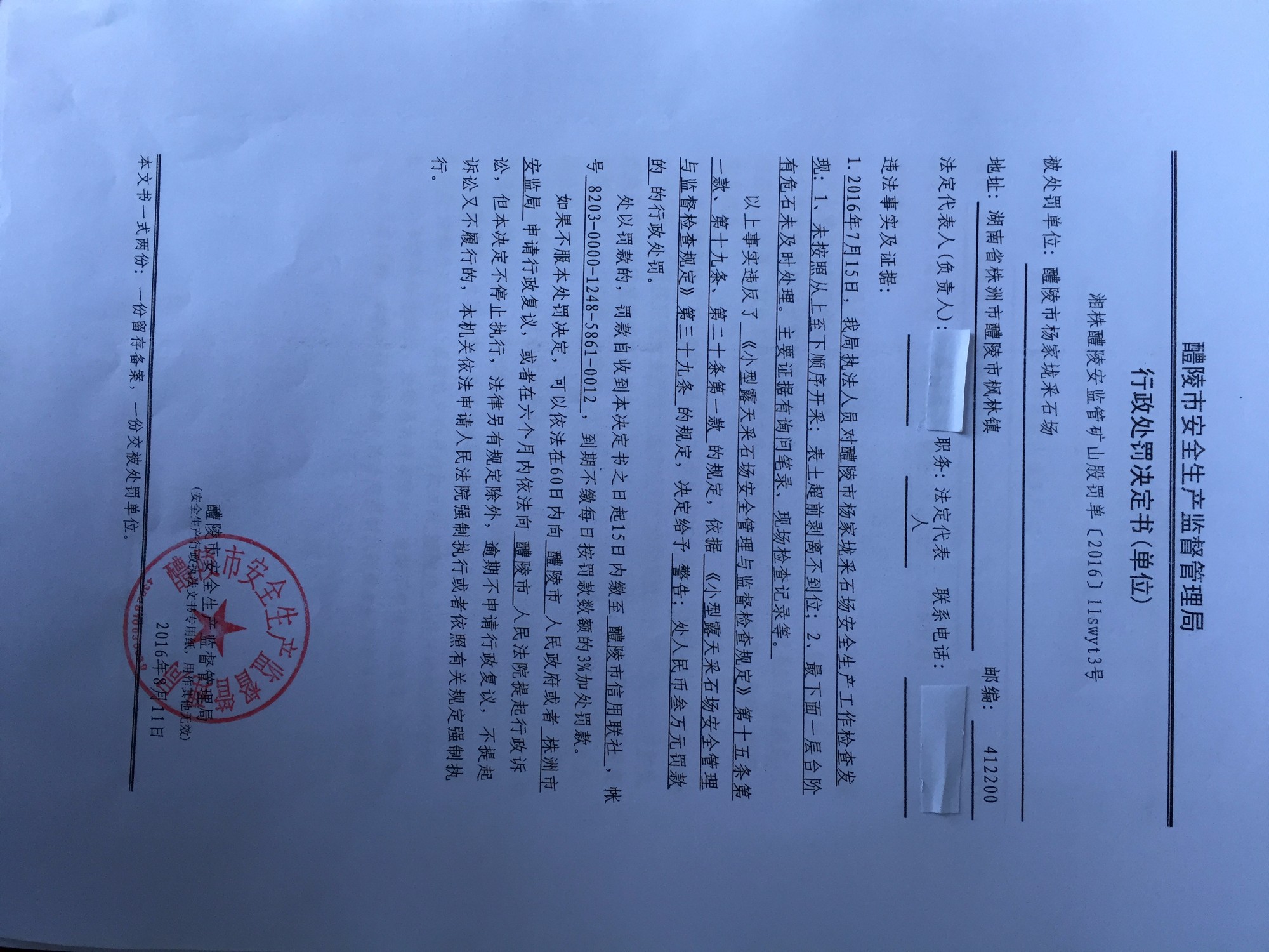 (湘株醴陵)安监执法大队罚单〔2016〕