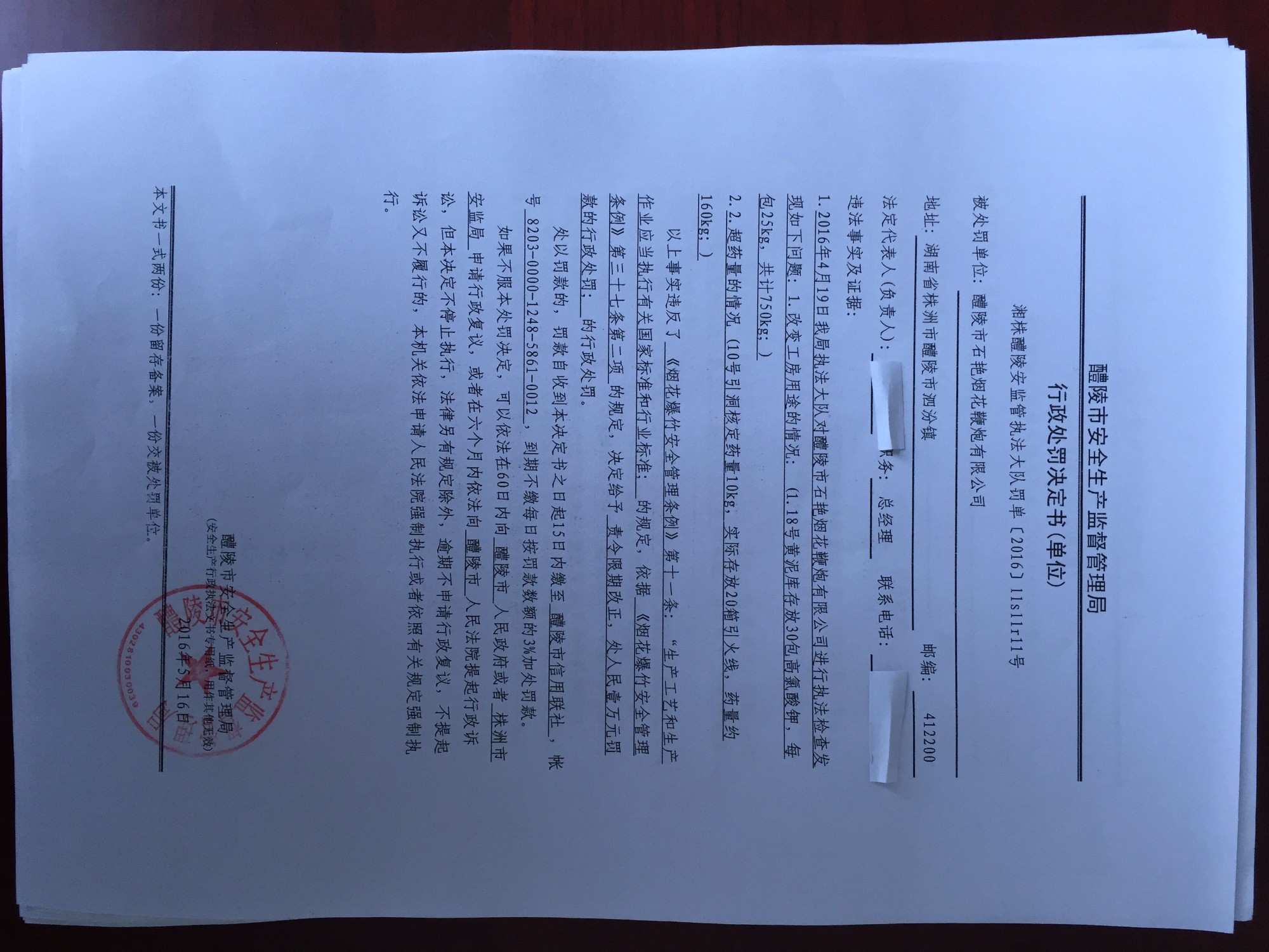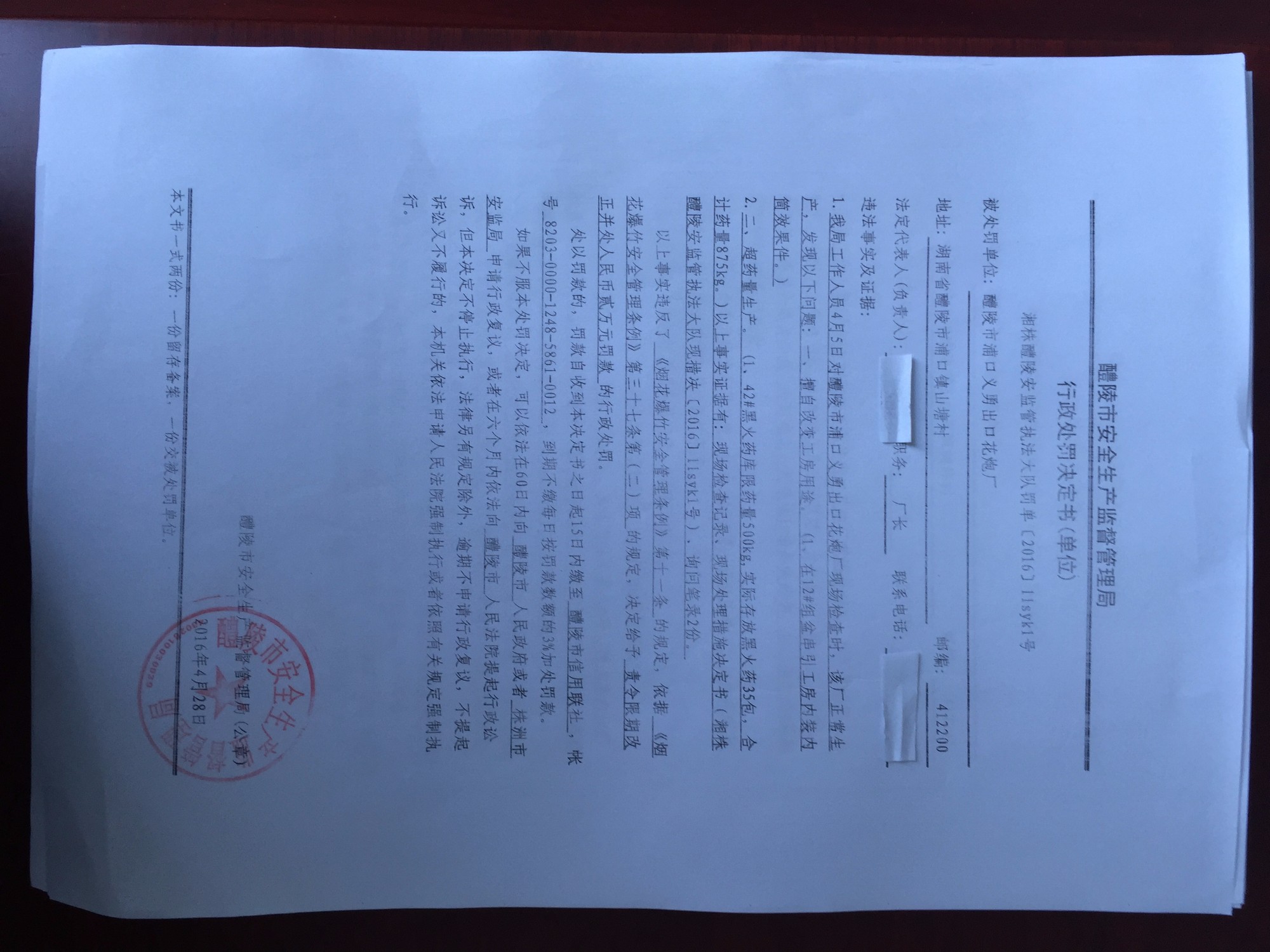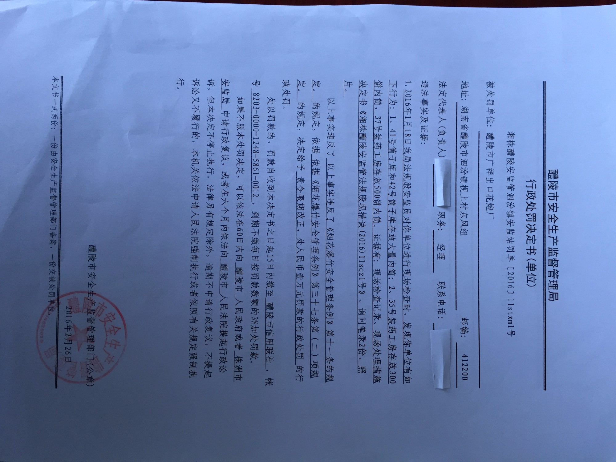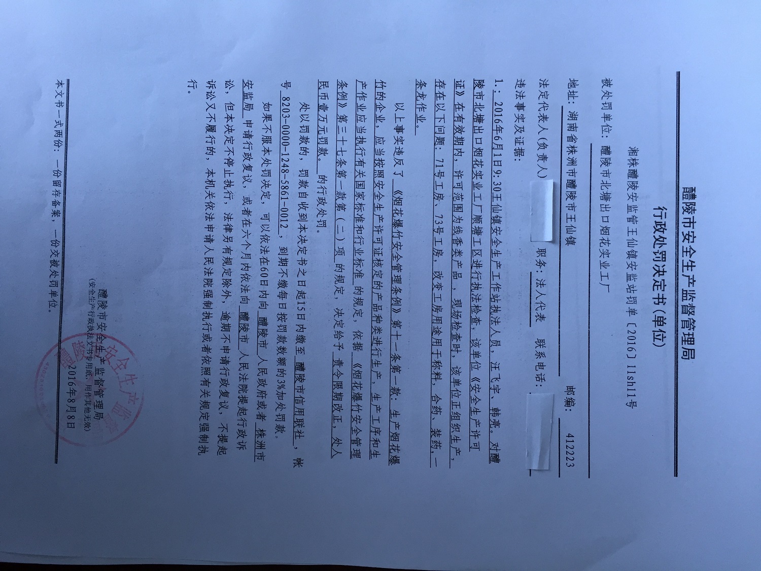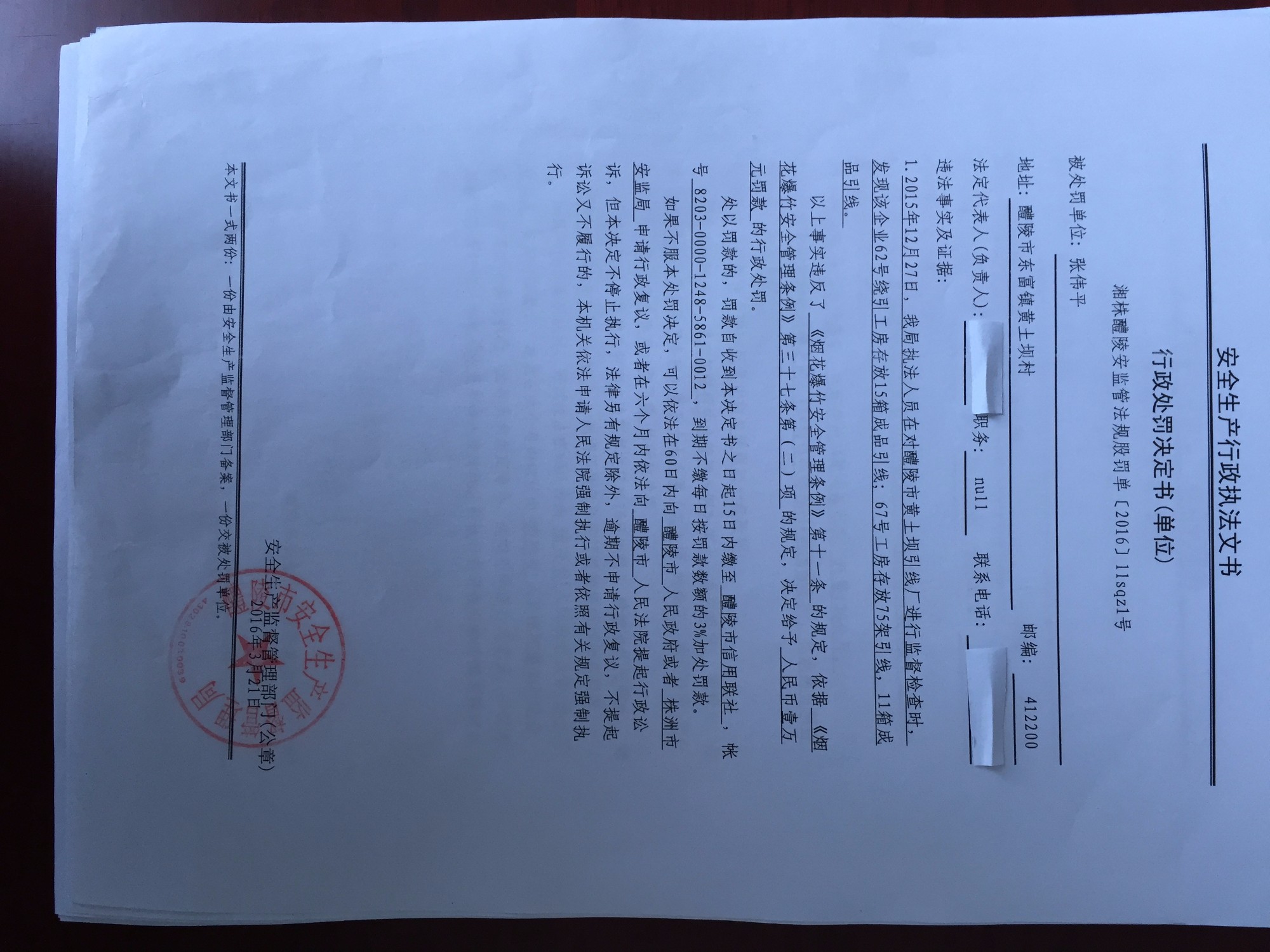 (湘株醴陵)安监执法大队罚单〔2016〕