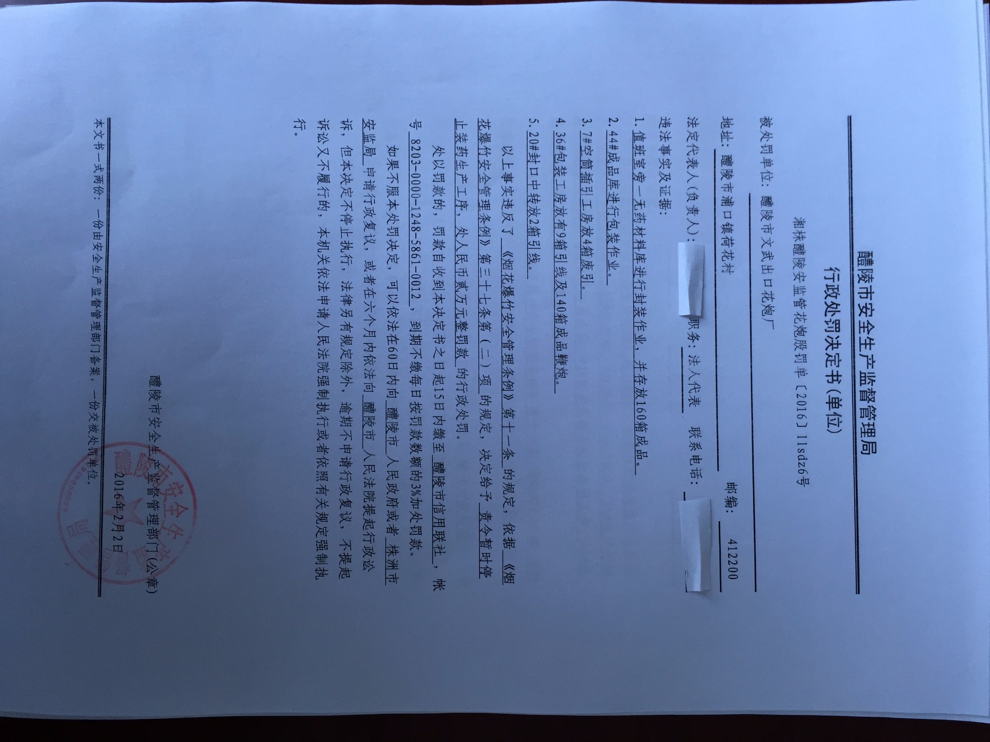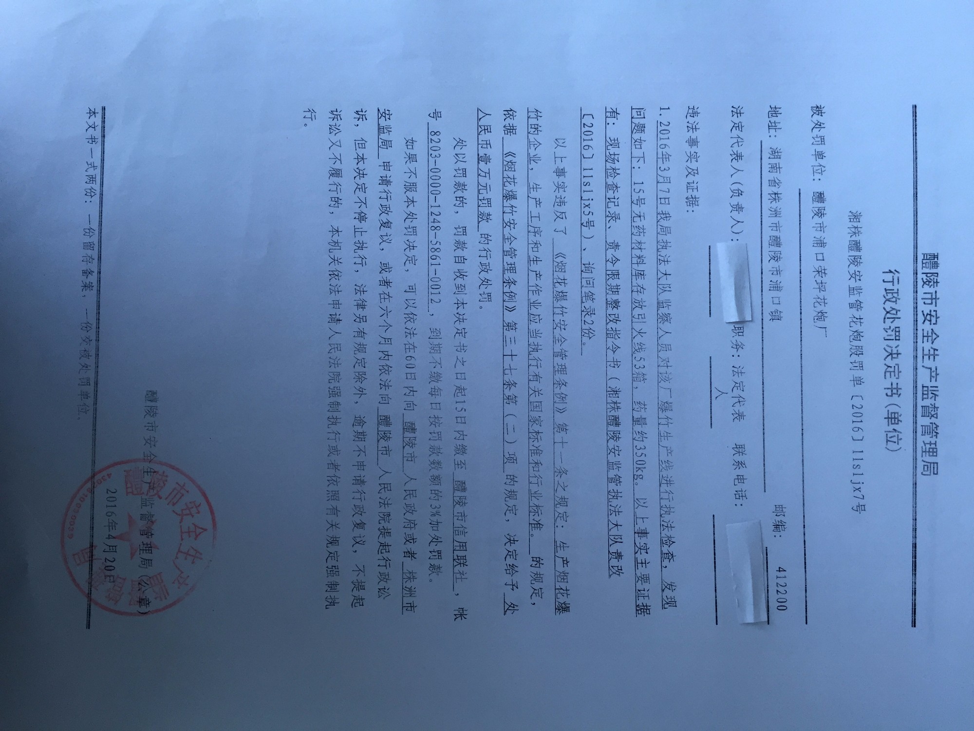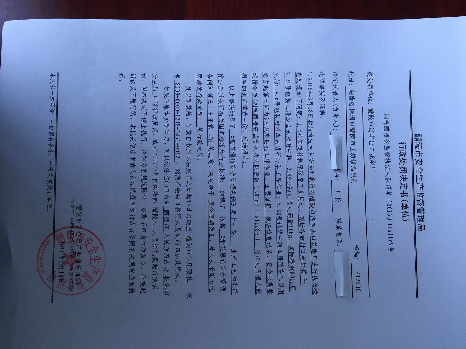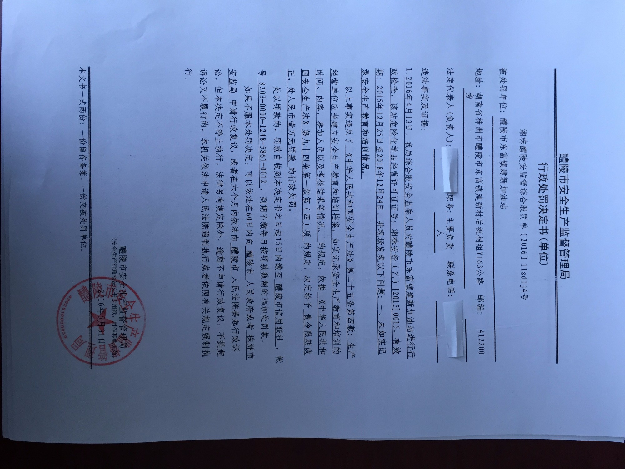 (湘株醴陵)安监执法大队罚单〔2016〕