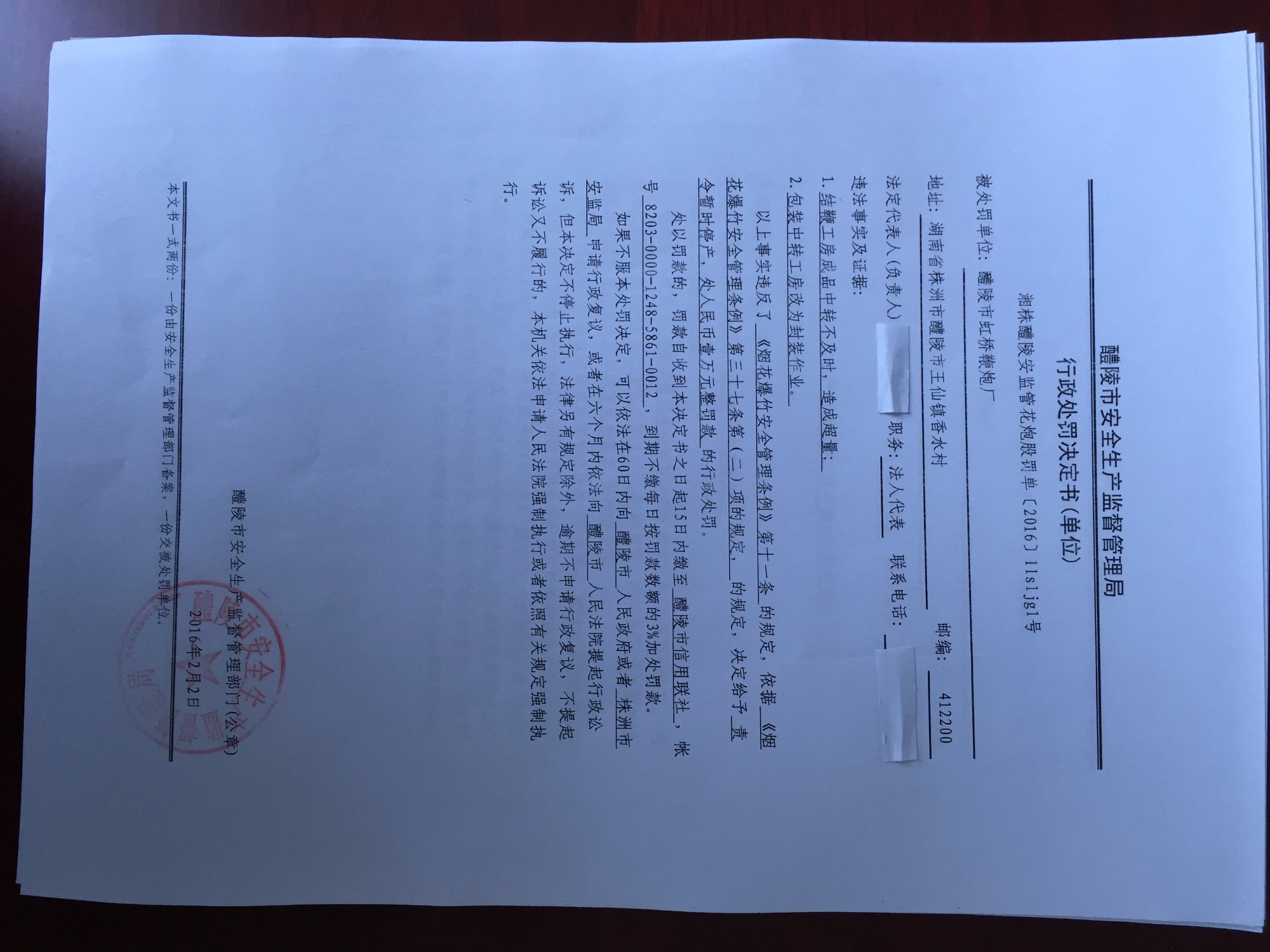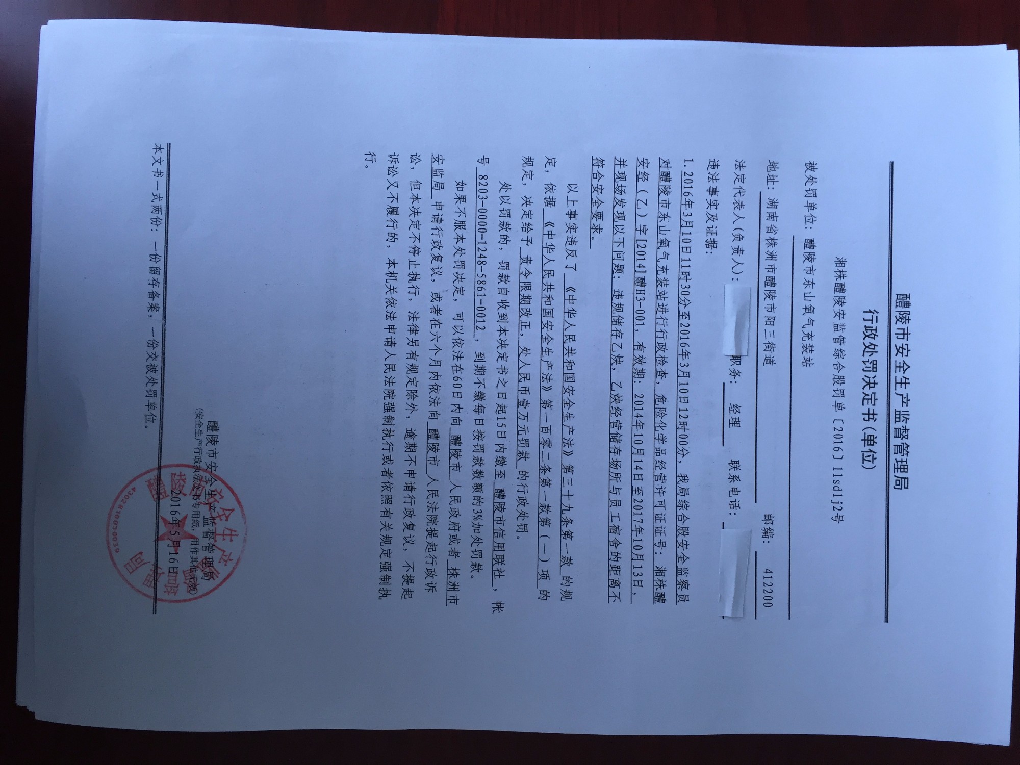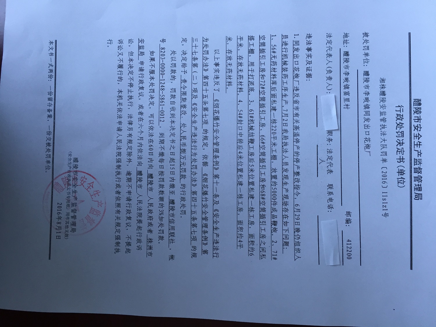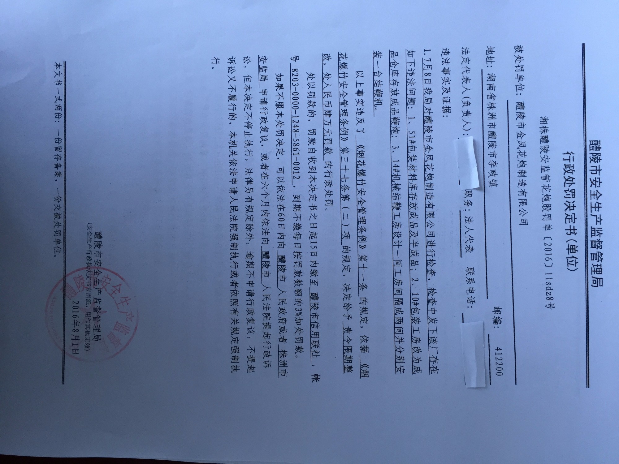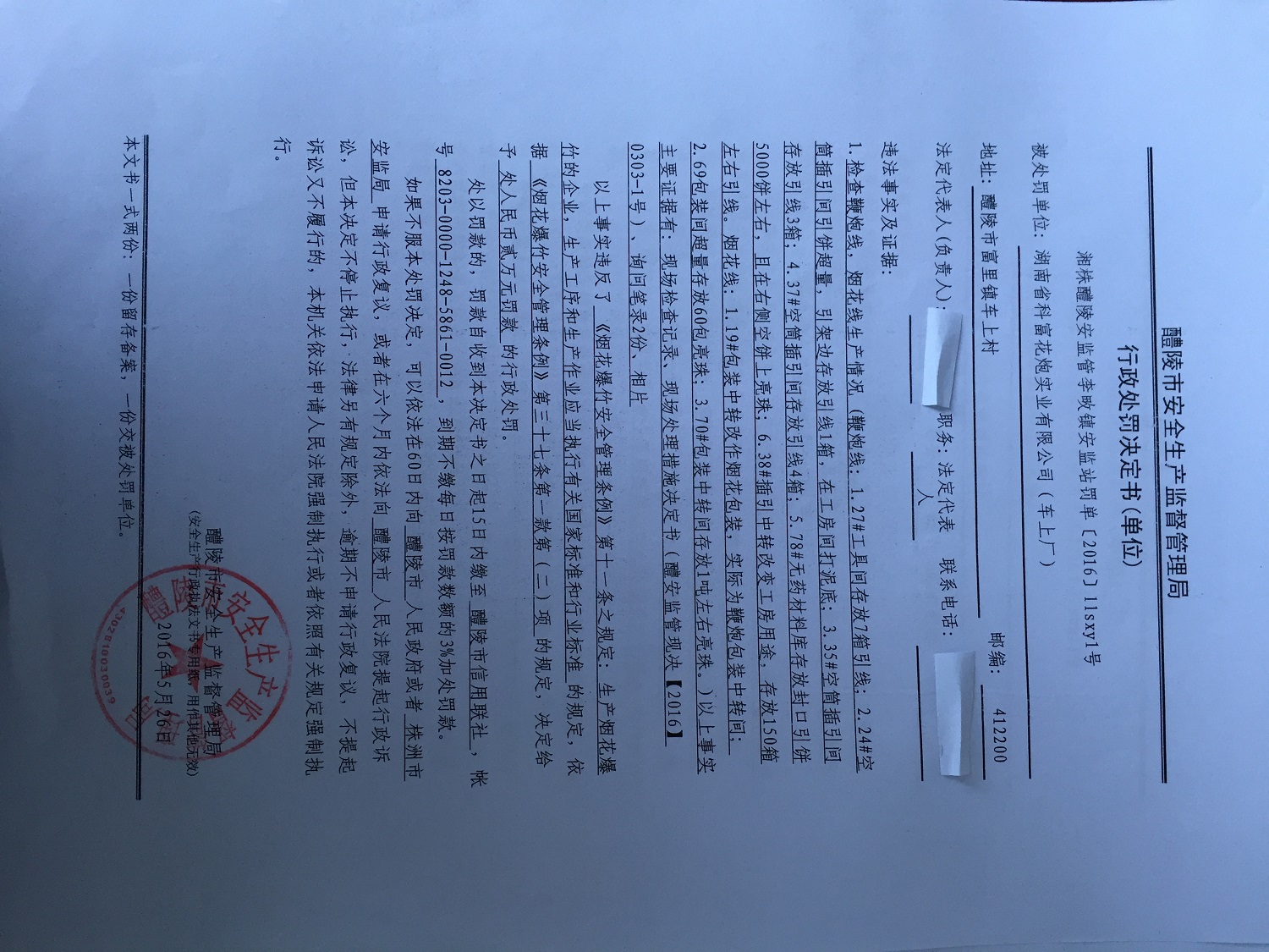 (湘株醴陵)安监执法大队罚单〔2016〕