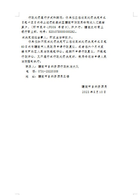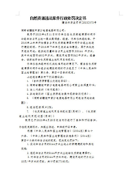 自然资源违法案件行政处罚决定书(湖南省醴陵市黄沙电瓷电器有限公司编号醴自然资监罚字【2023】073号)