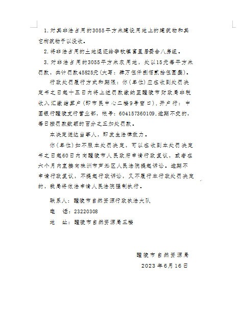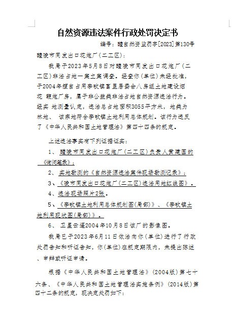 自然资源违法案件行政处罚决定书(醴陵市同发出口花炮厂(二工区)醴自然资监罚字【2023】130号)