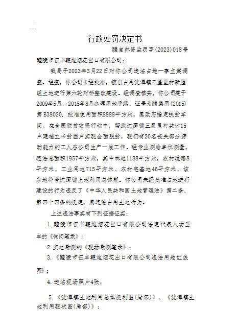 自然资源违法案件行政处罚决定书(醴陵市伍丰鞭炮烟花出口有限公司醴自然资监罚字【2023】018号)