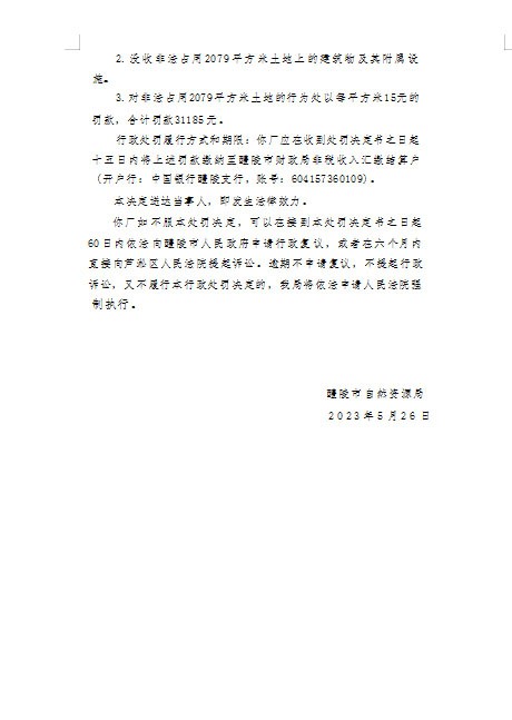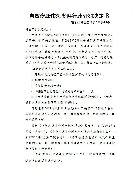 自然资源违法案件行政处罚决定书(醴陵市长发电瓷厂编号醴自然资监罚字【2023】085号)