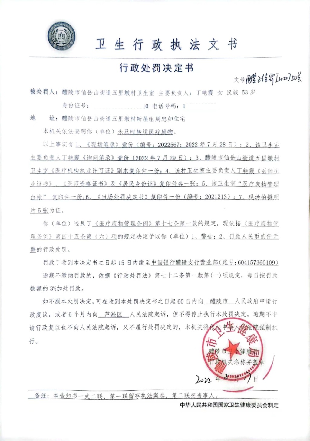醴卫传罚[2022]50号
